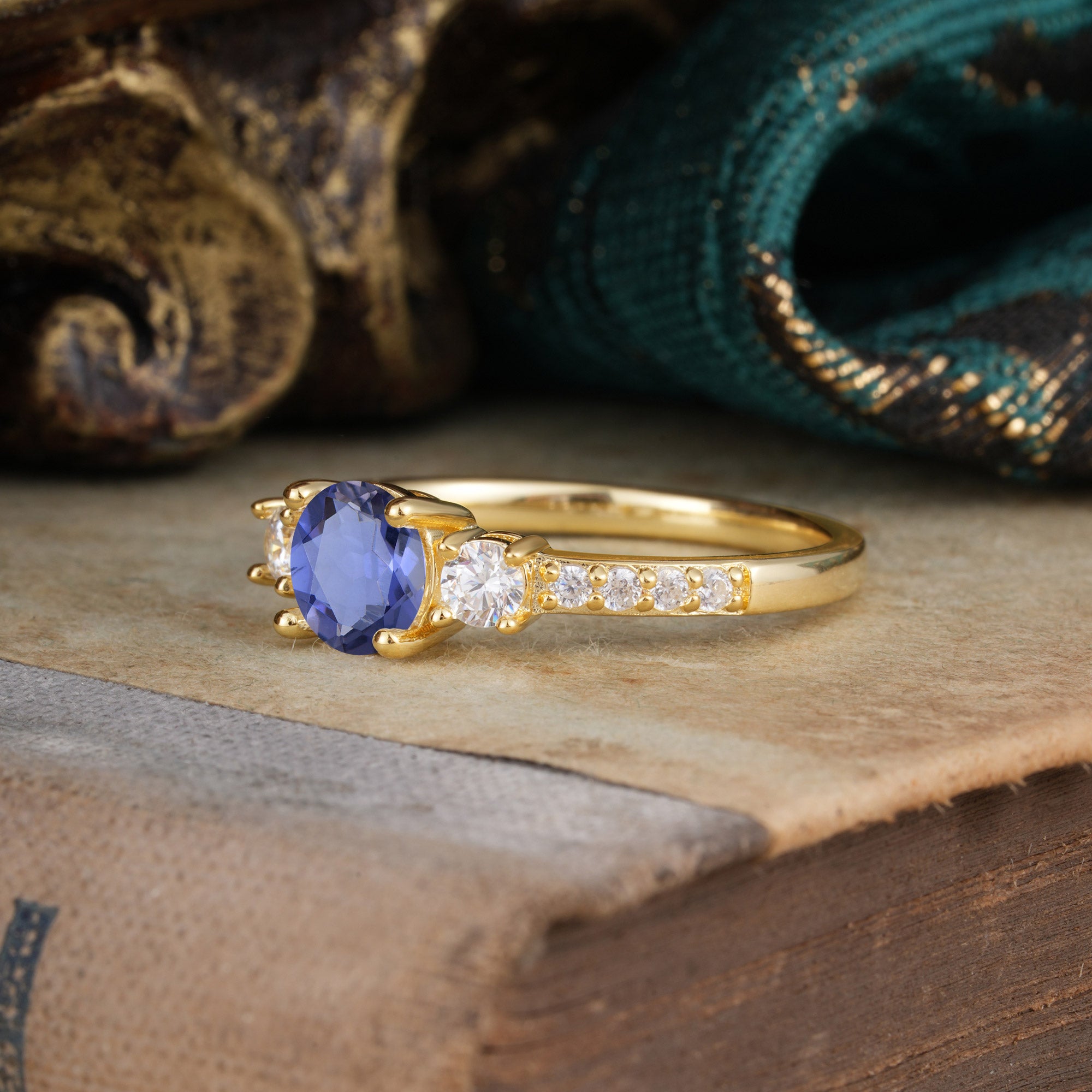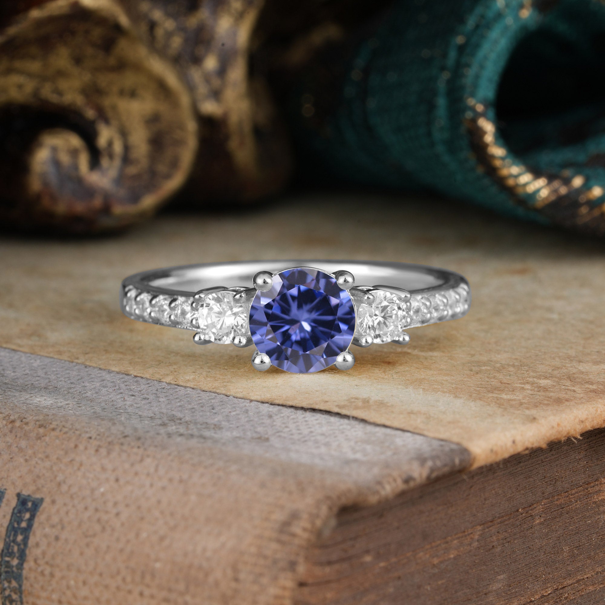 Round Cut Tanzanite Engagement Ring Three Stone Promise Ring Four Claw Prong Setting