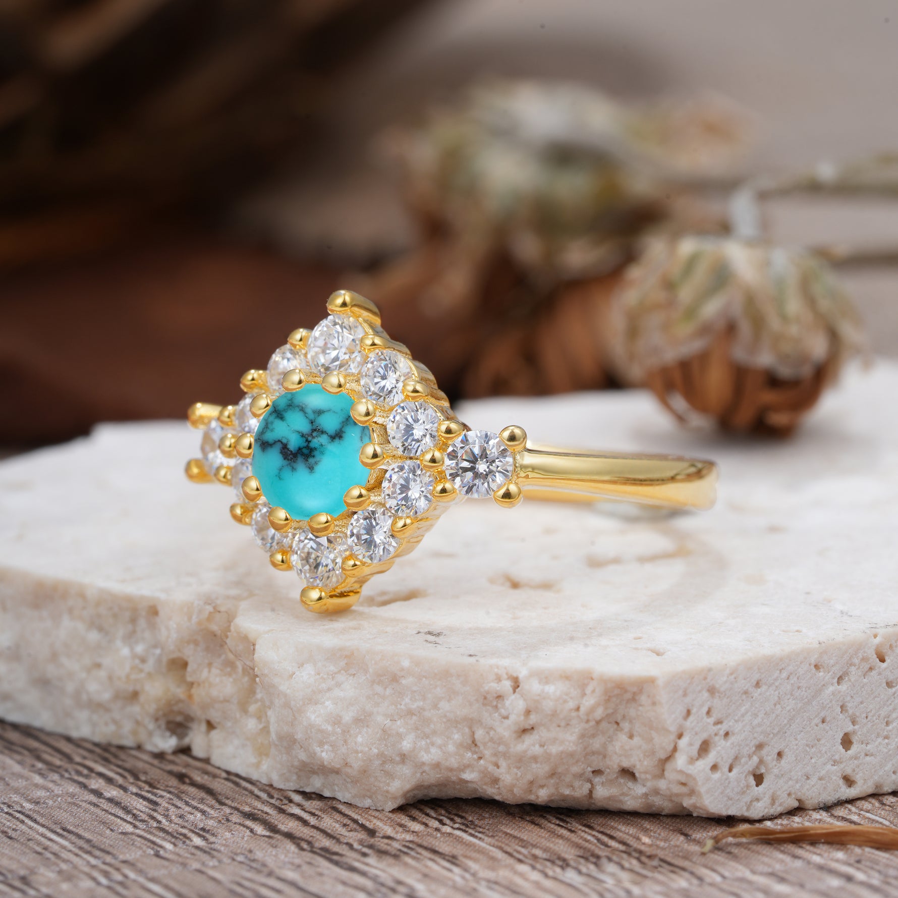 Round Cut Turquoise Engagement Ring Cluster 6-Prong Setting