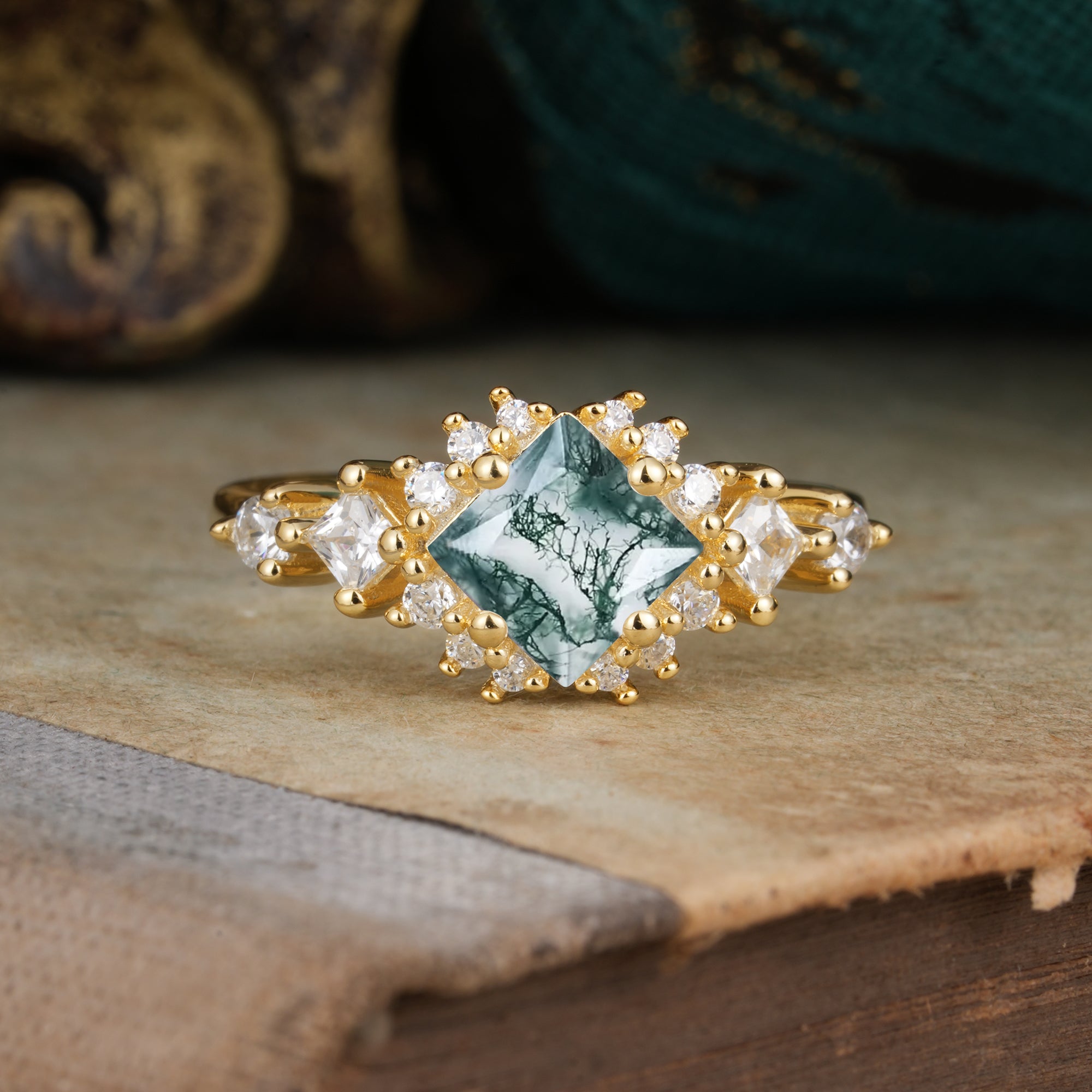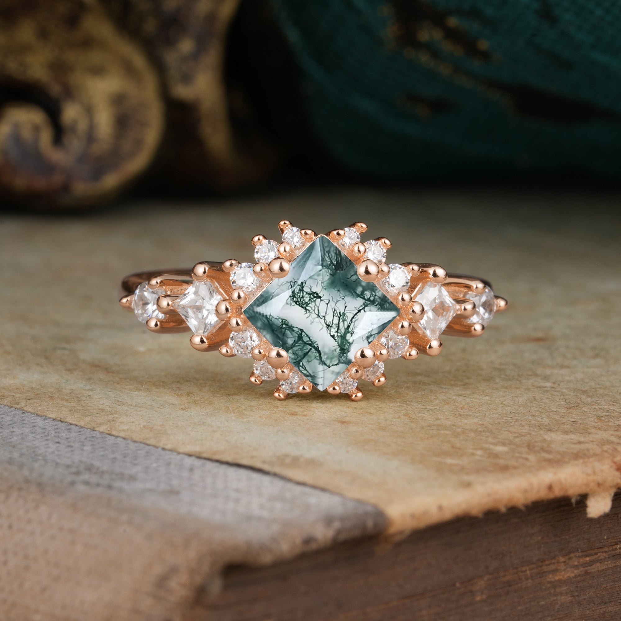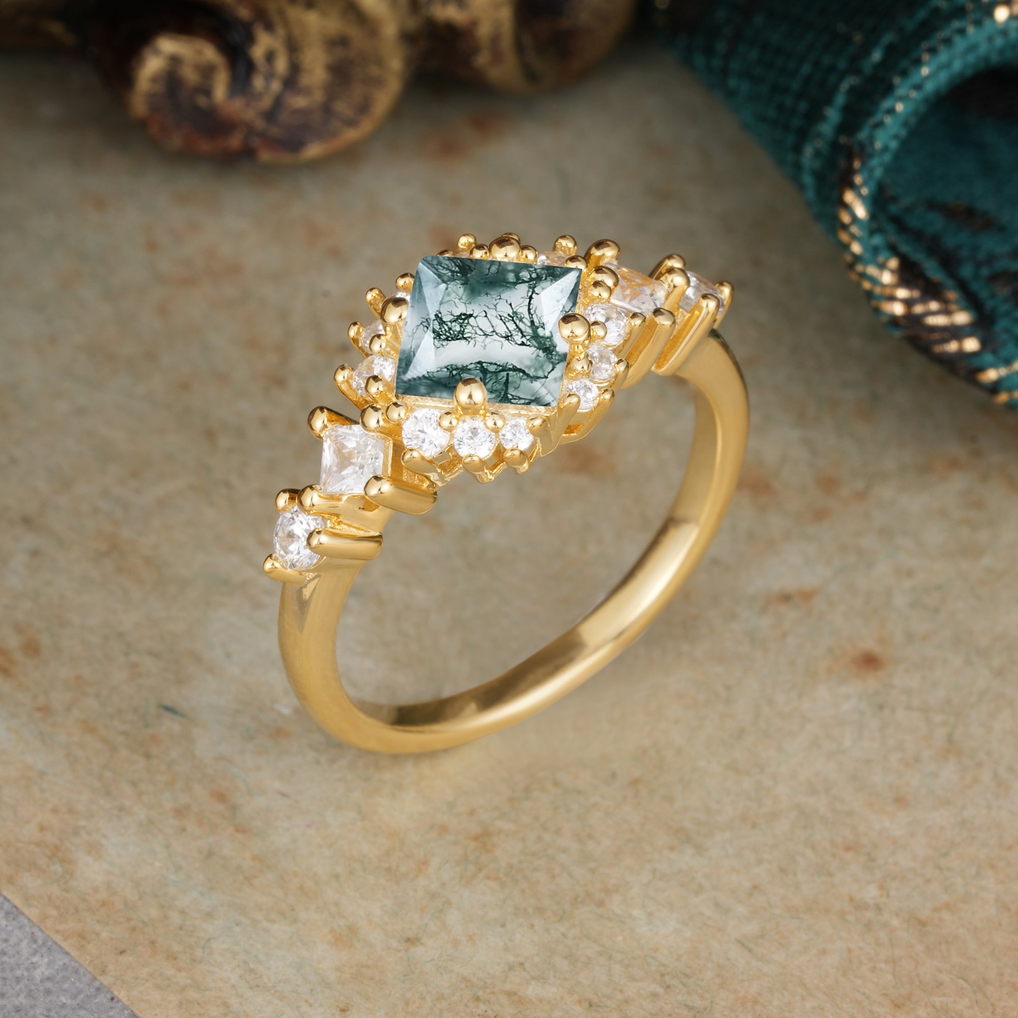 | Stone Material: Moss Agate | Stone Material: Moissanite |