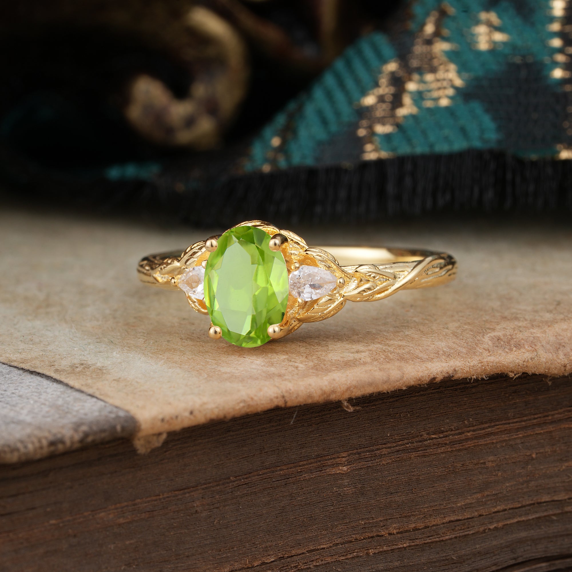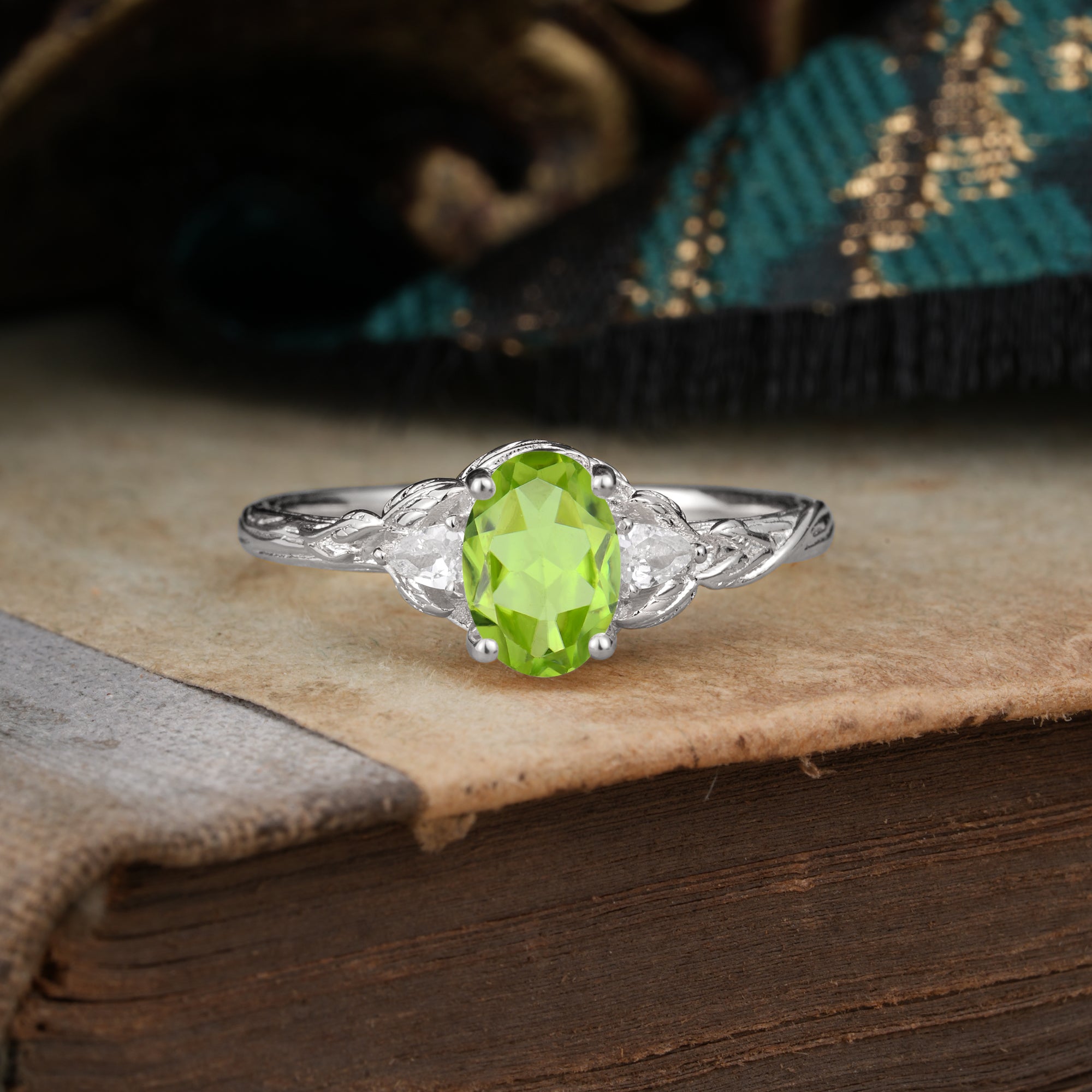 Timeless Classic Nature-Inspired 4-Prong Oval-Cut Peridot Engagement Ring