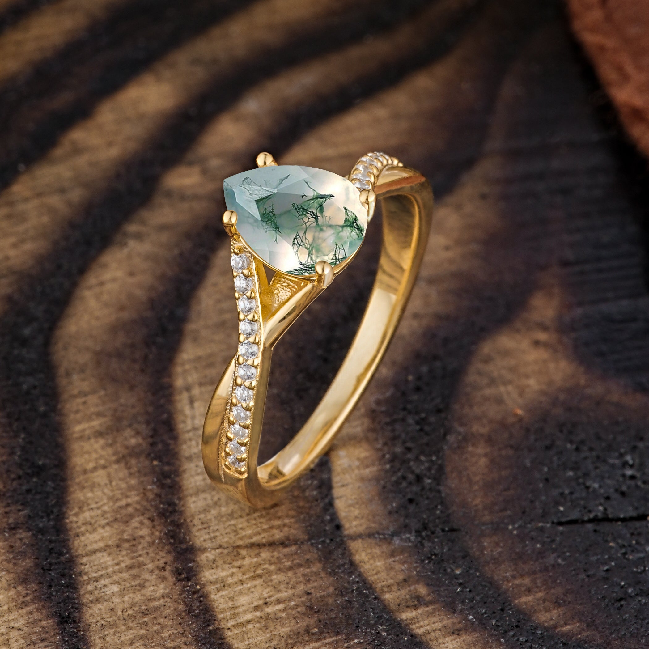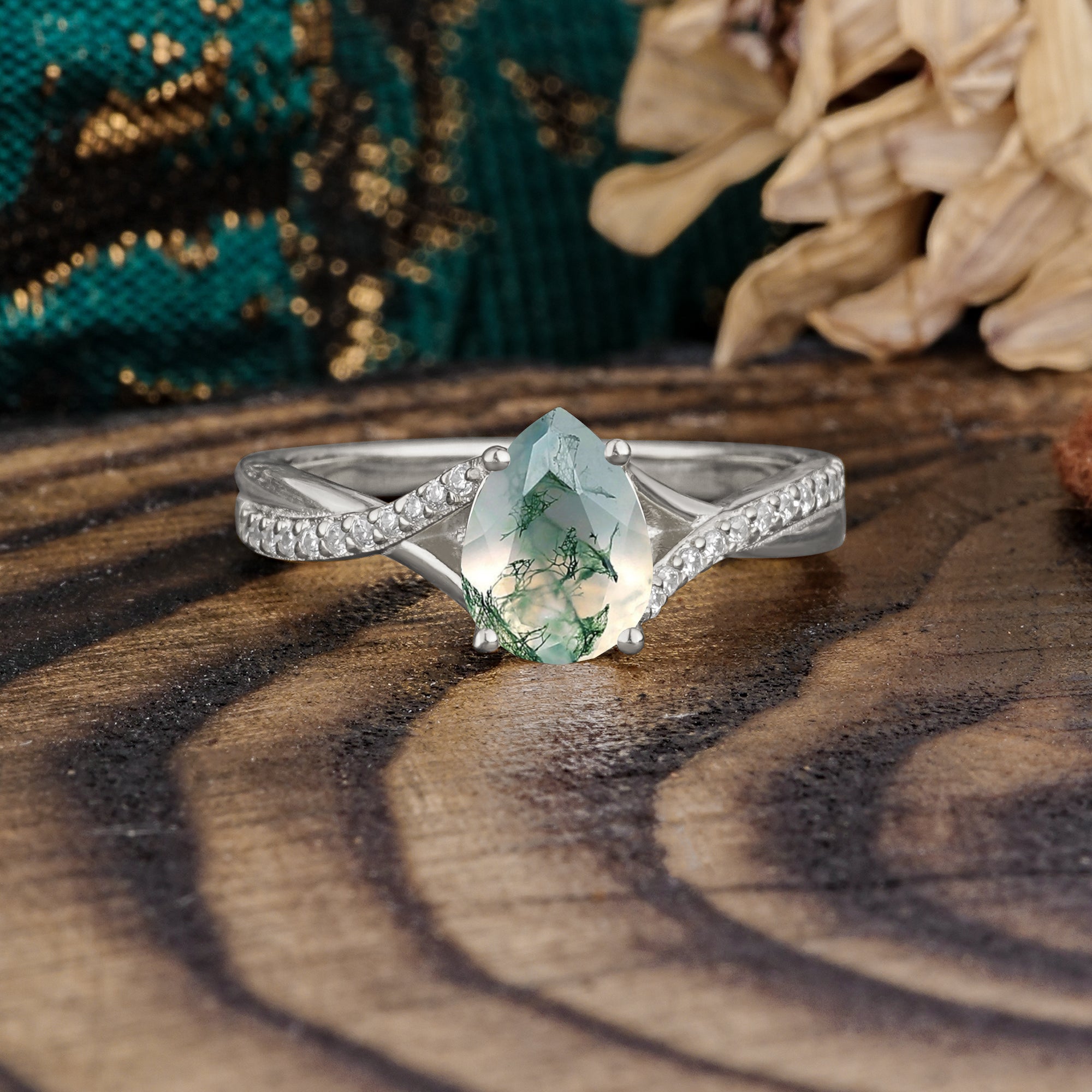 | Stone Material: Moss Agate | Stone Material: Moissanite |