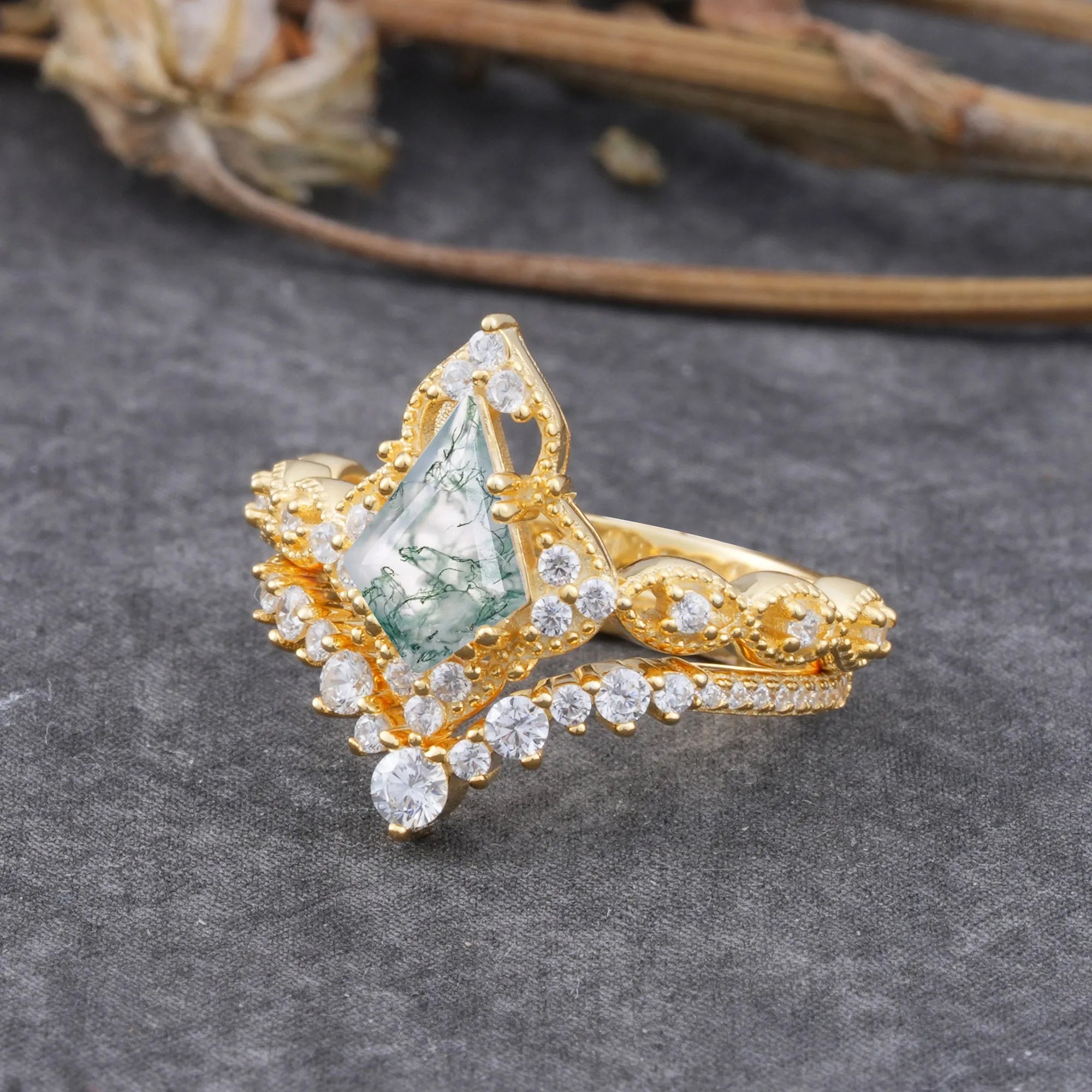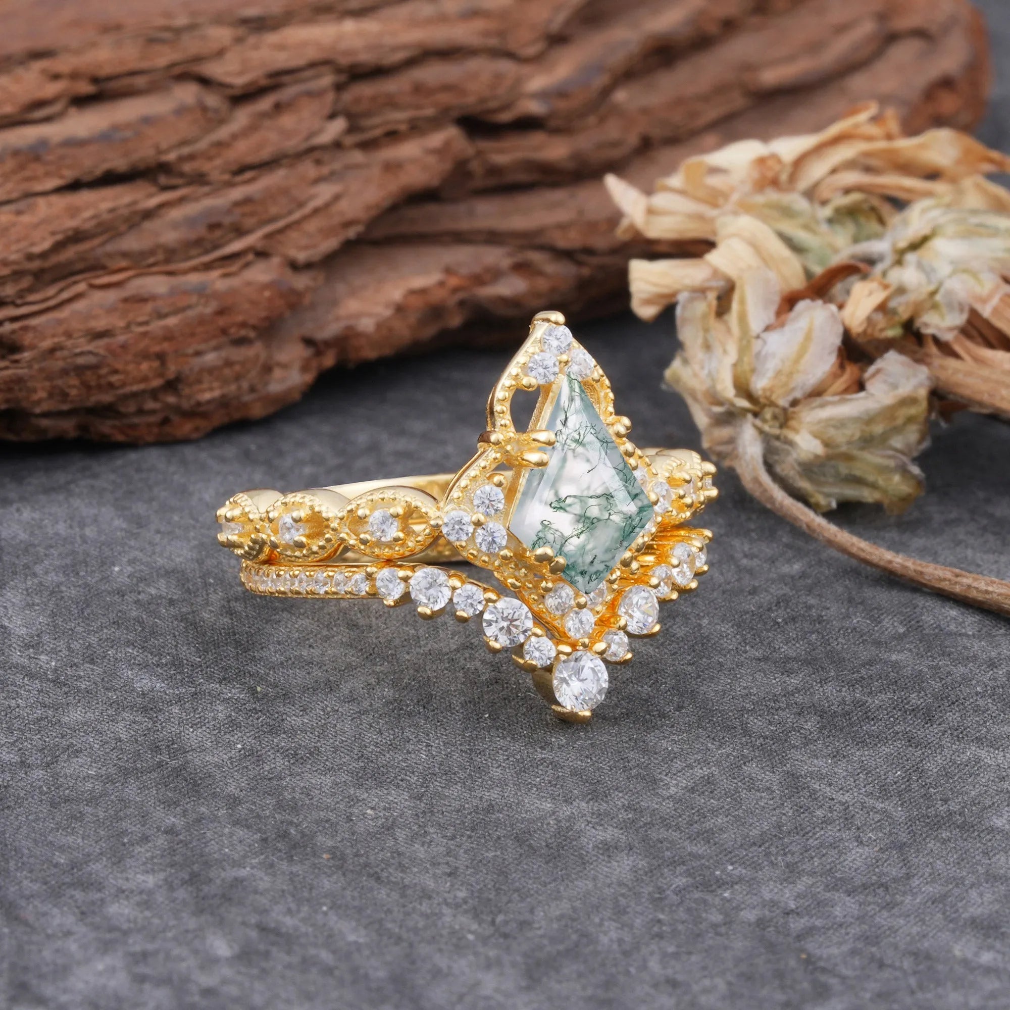 | Stone Material: Moss Agate | Stone Material: Moissanite |