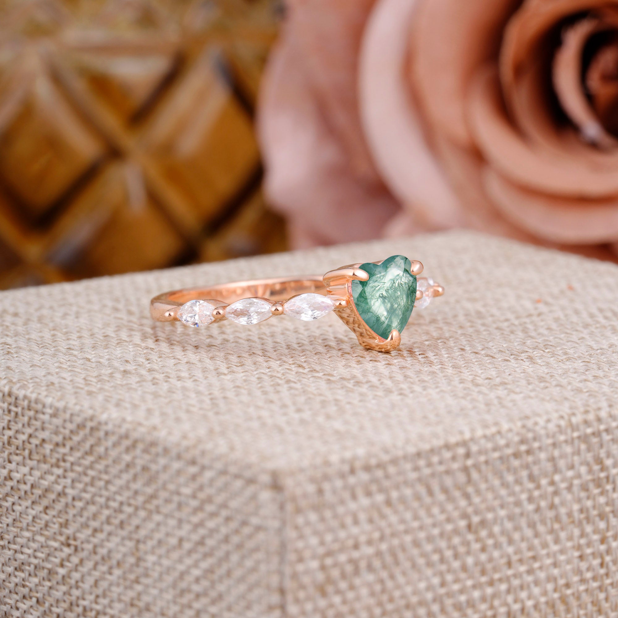 | Stone Material: Moss Agate | Stone Material: Moissanite |