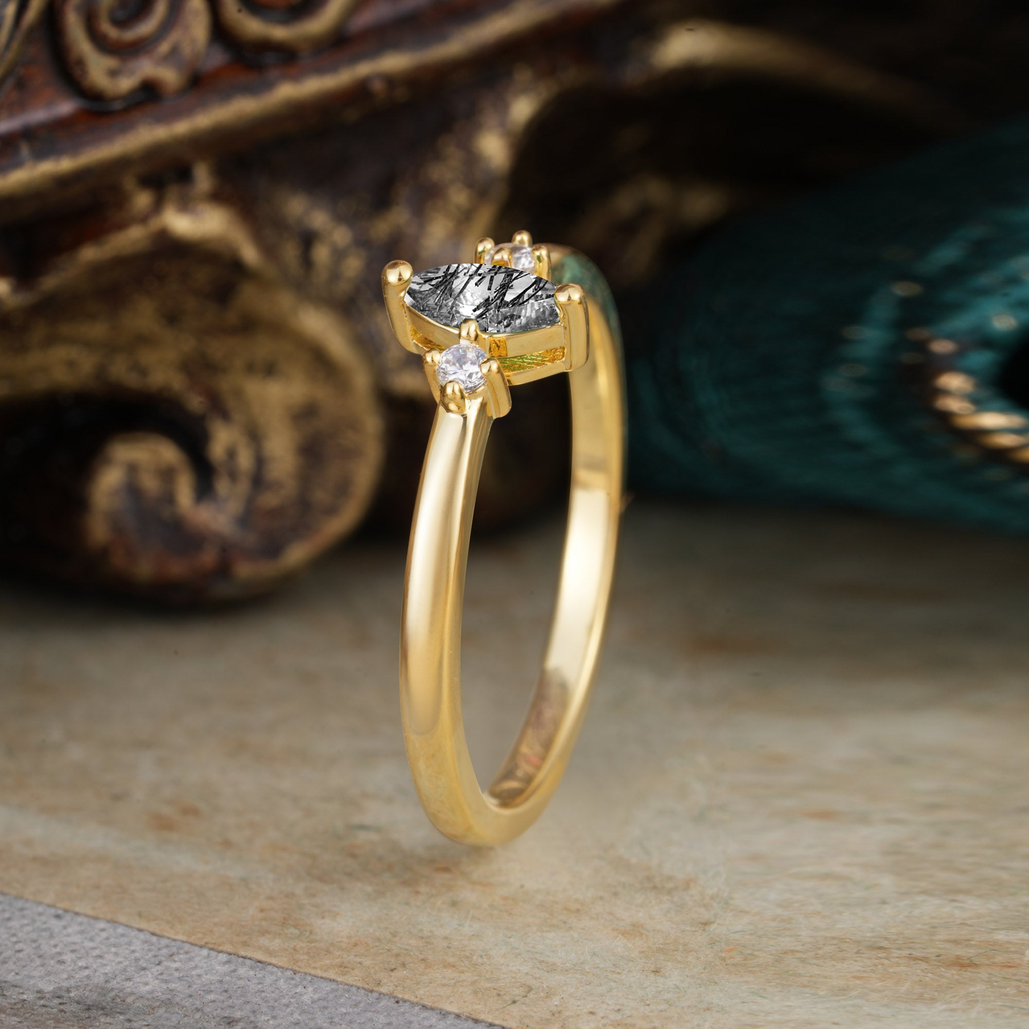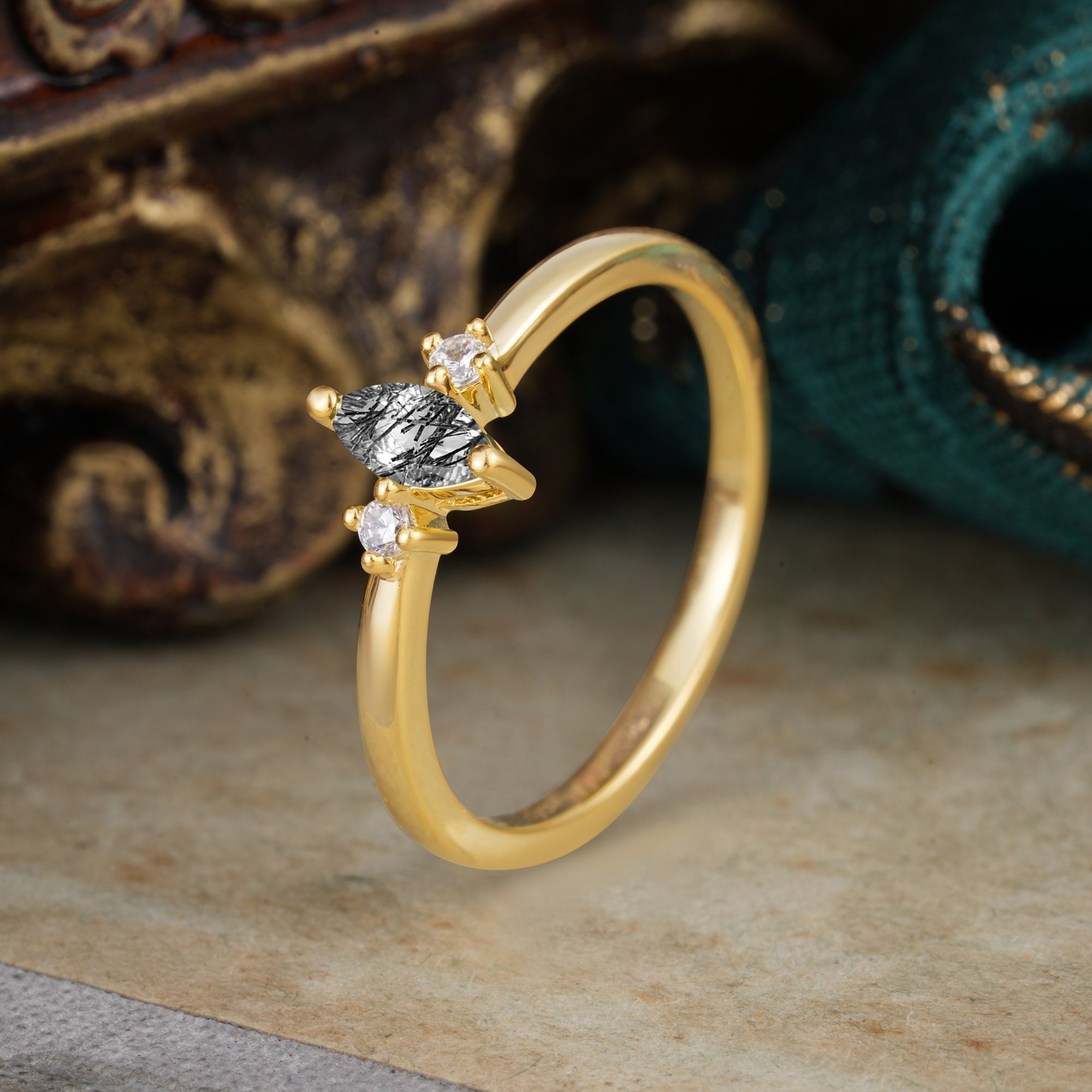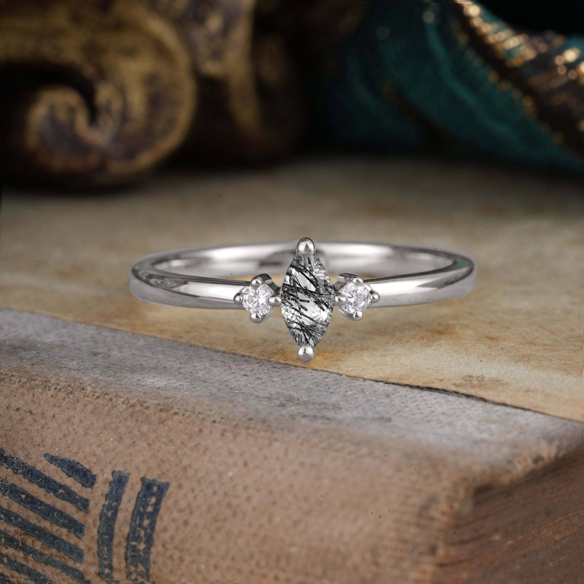 | Stone Material: Black Rutilated Quartz | Stone Material: Moissanite |