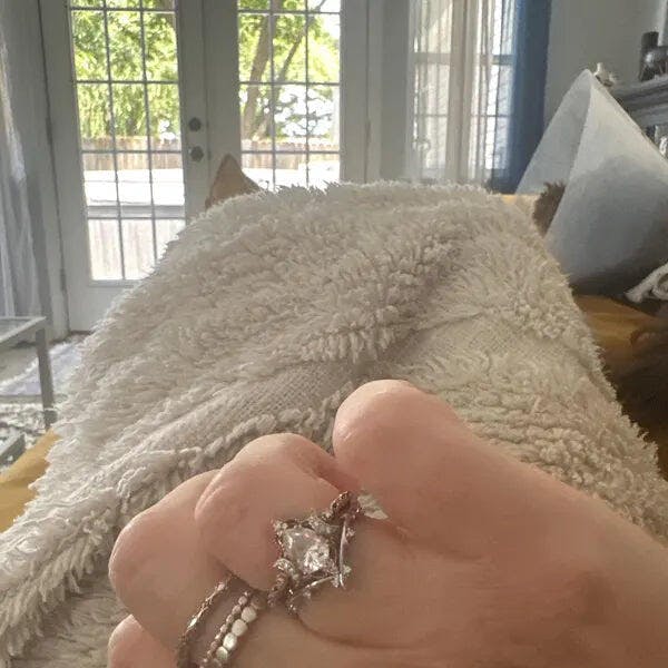Very soothing This Lab Moissanite ring was gifted to my grandmother as a Christmas gift, and it exceeded all her expectations! The 18K gold setting makes it even more special.