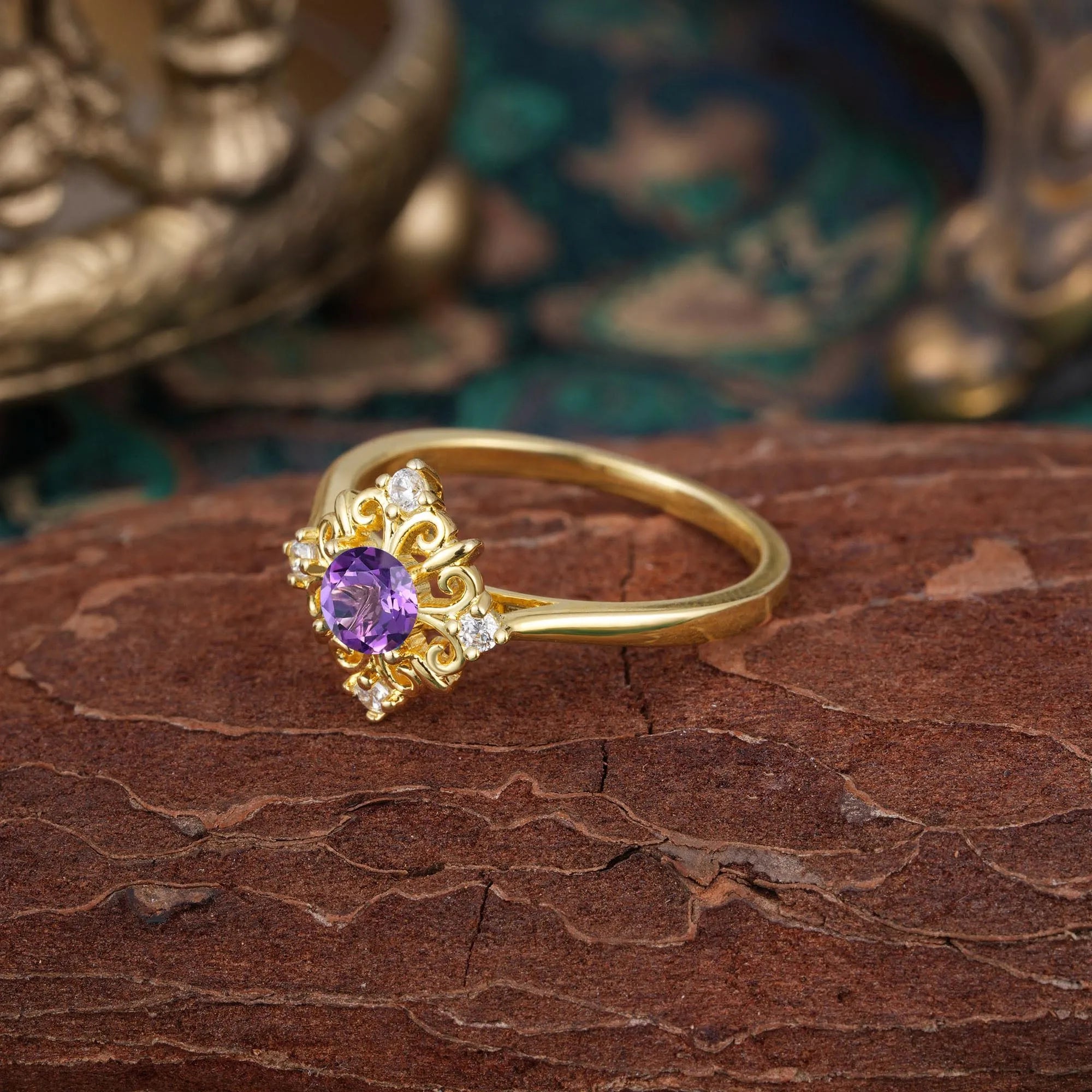 Step into timeless elegance with this Vintage Amethyst Filigree Ring, a romantic treasure designed for women who adore classic charm and vibrant color. At its center is a deep purple amethyst—known as the stone of peace and passion—set in an intricately detailed filigree band that echoes vintage artistry.