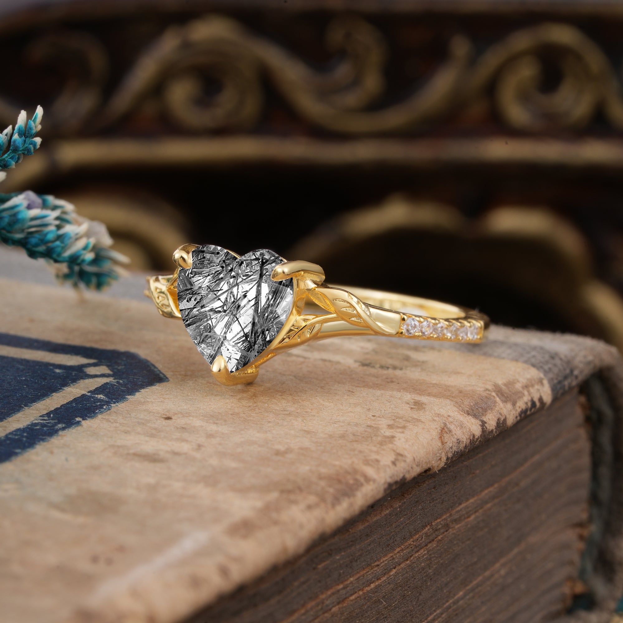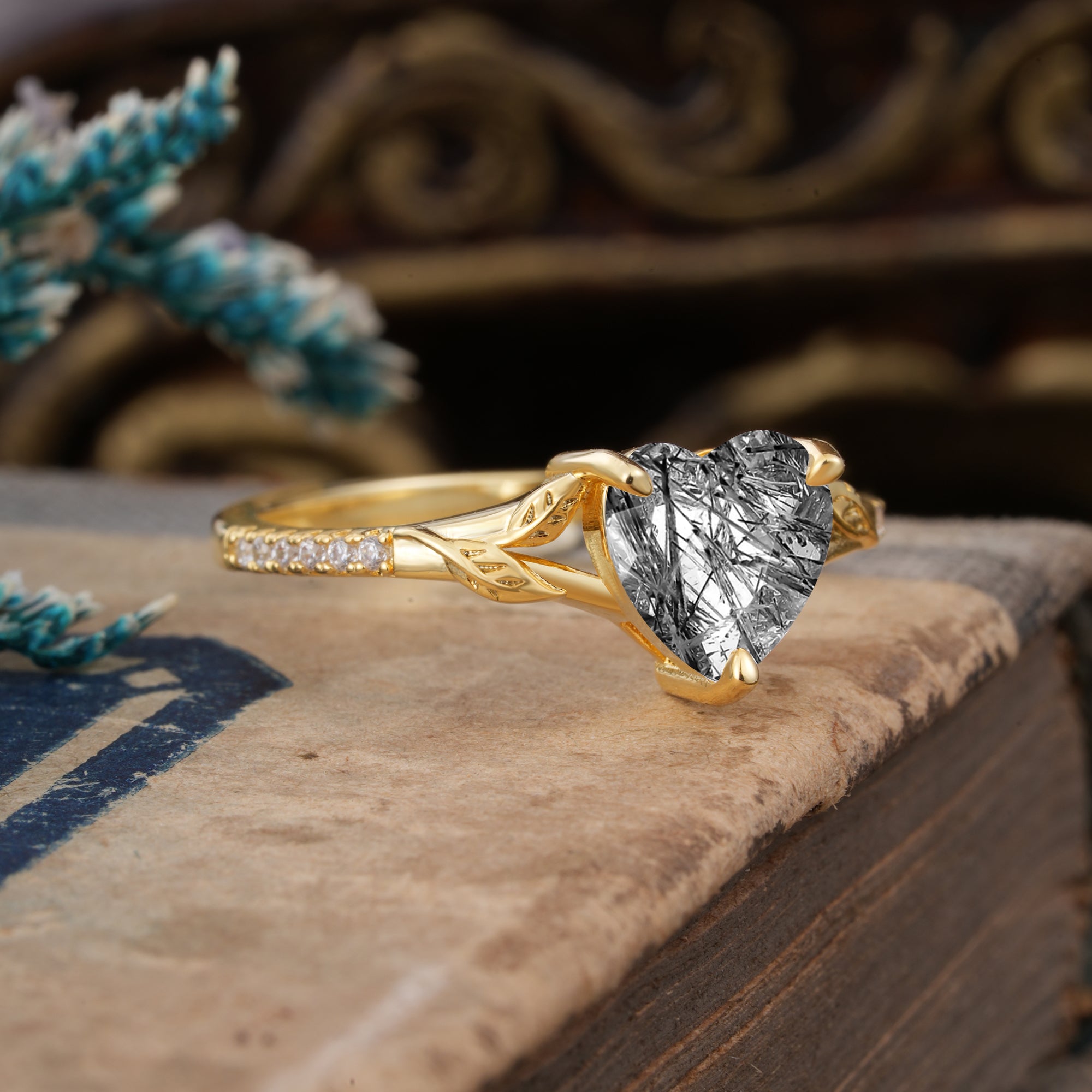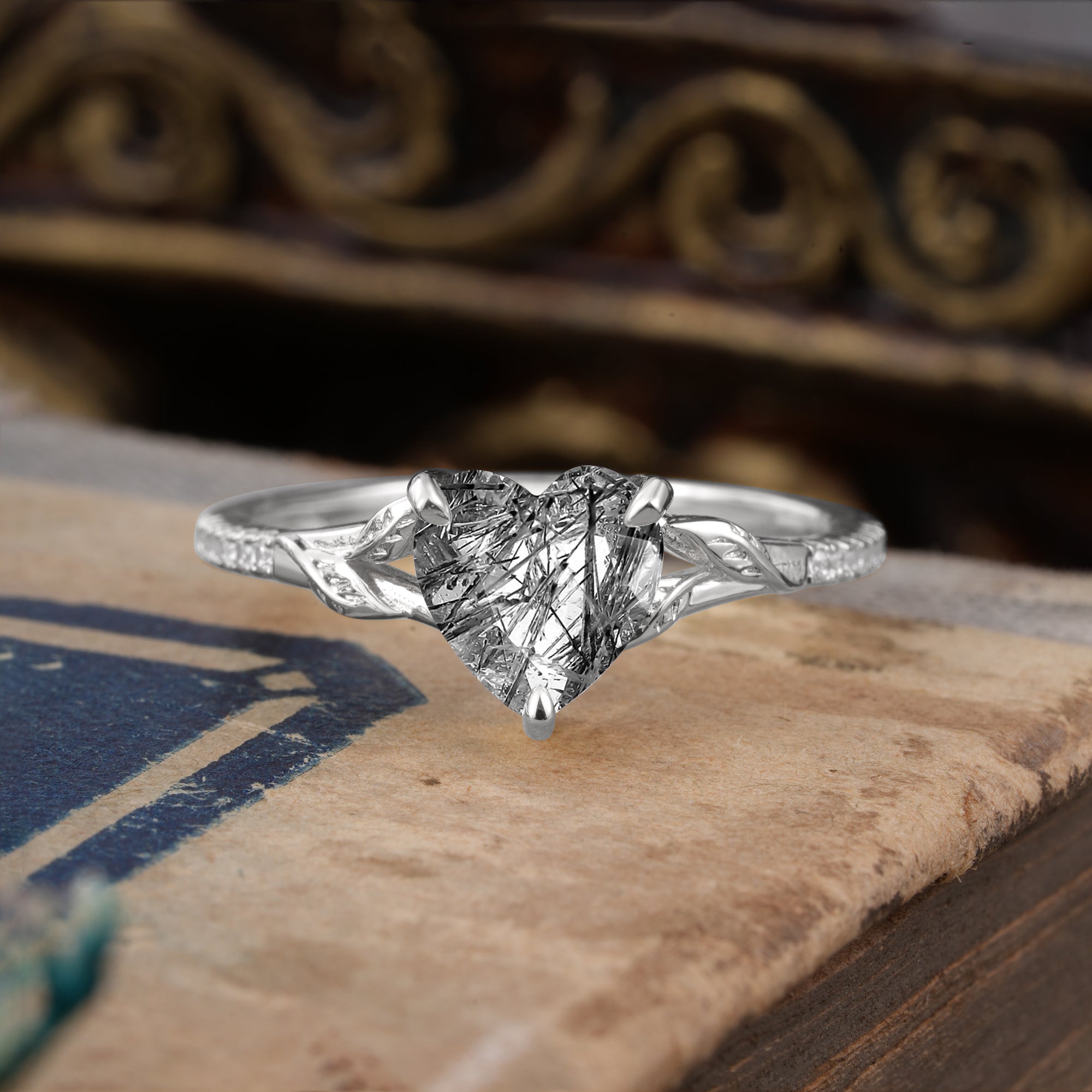 Vintage 3-Prong Heart-Cut Natural Black Rutilated Quartz Engagement Ring