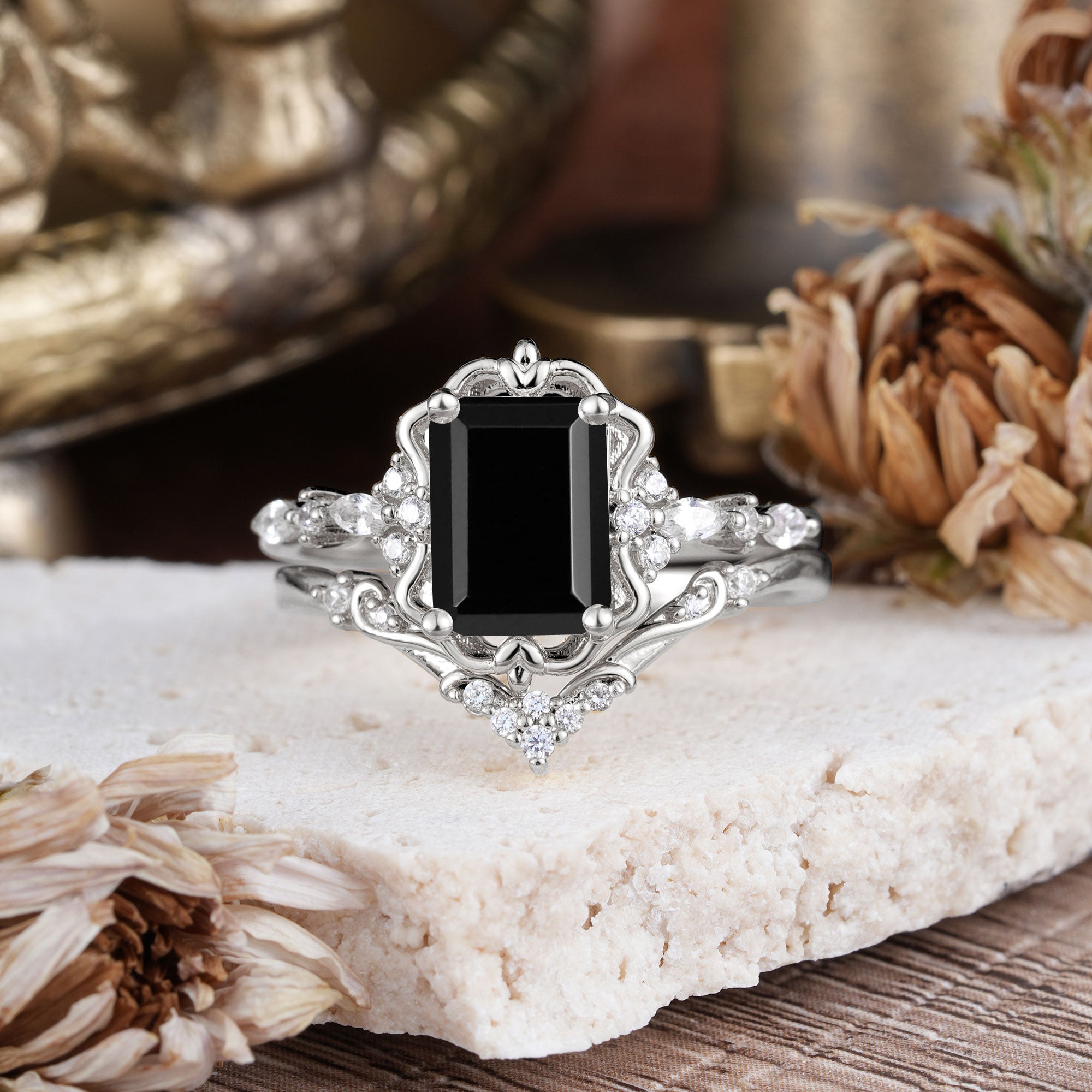 | Stone Material: Black Onyx | Stone Material: Moissanite |