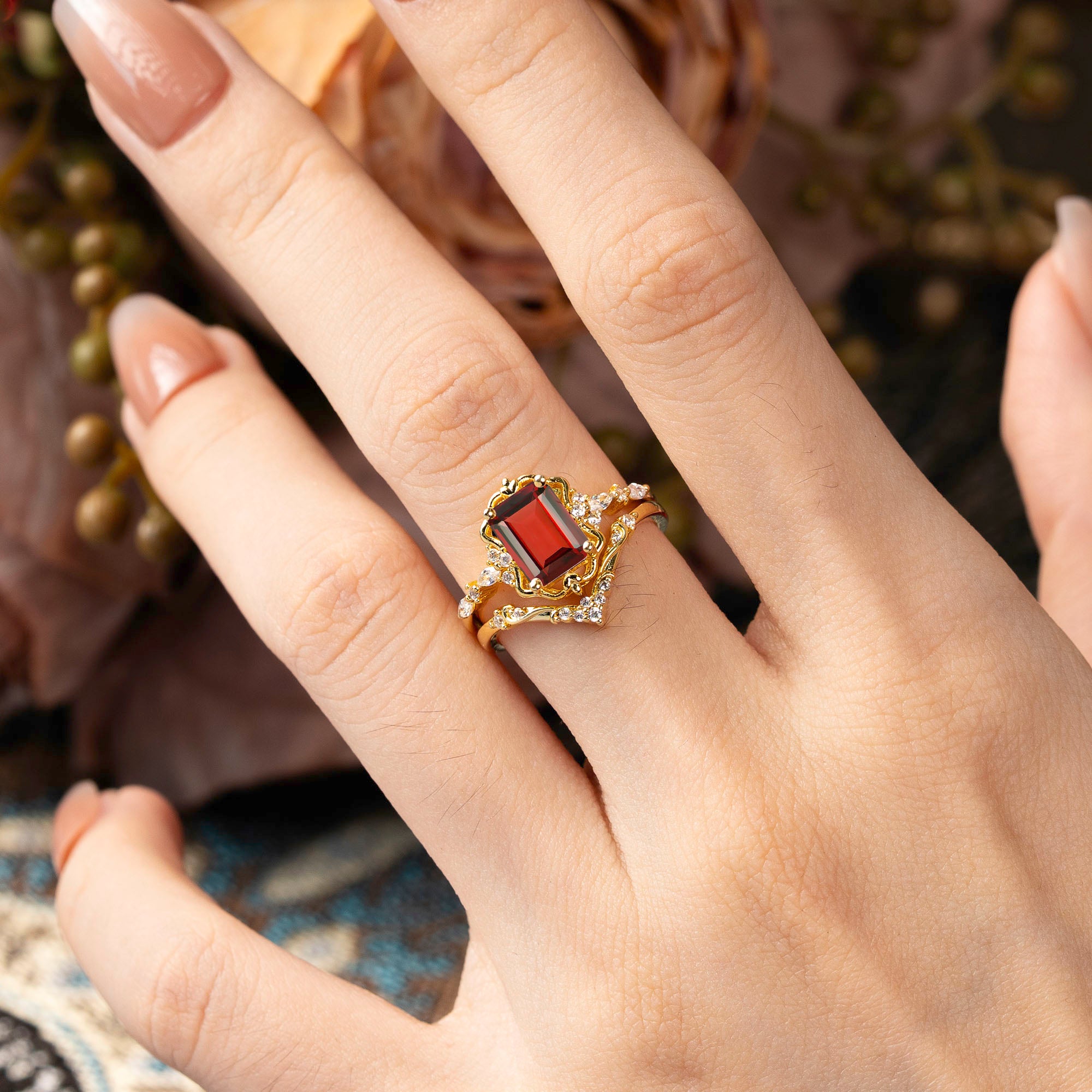 | Stone Material: Garnet | Stone Material: Moissanite |