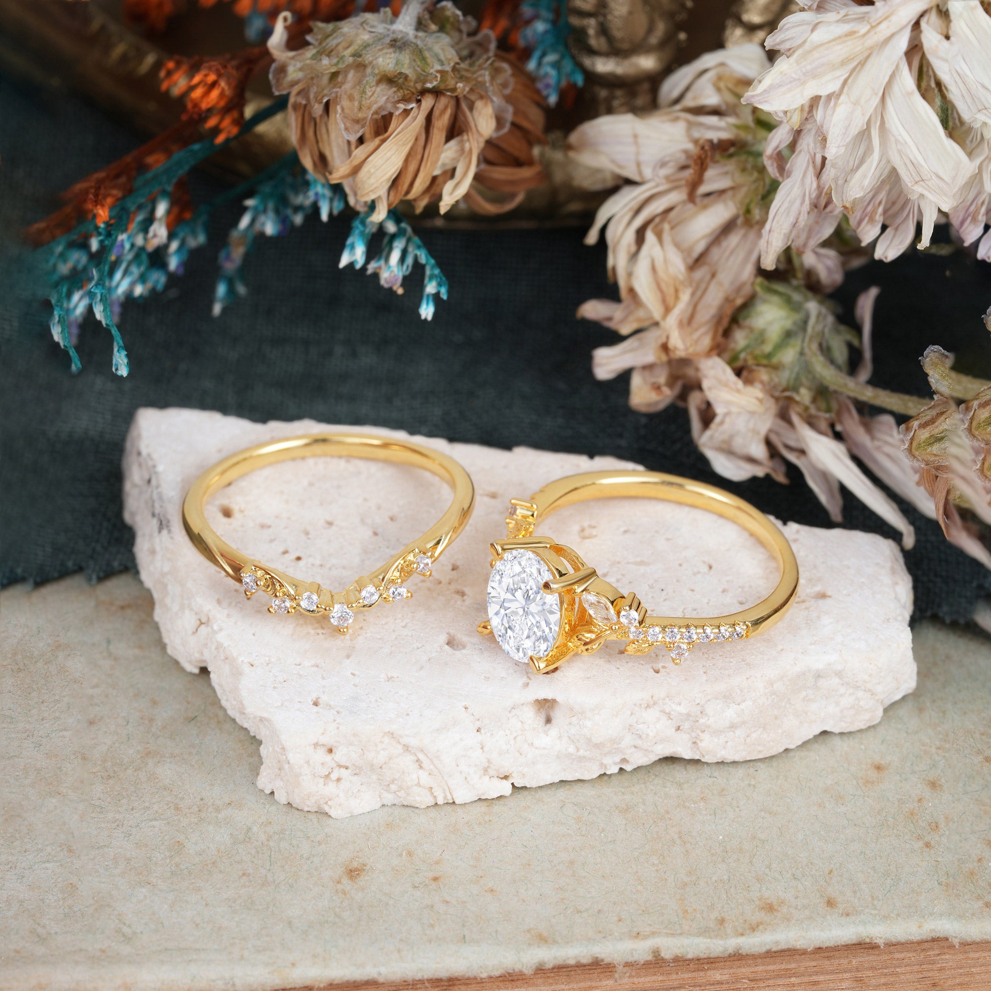 Vintage 4-Prong Oval-Cut Lab Diamond Engagement Ring Set