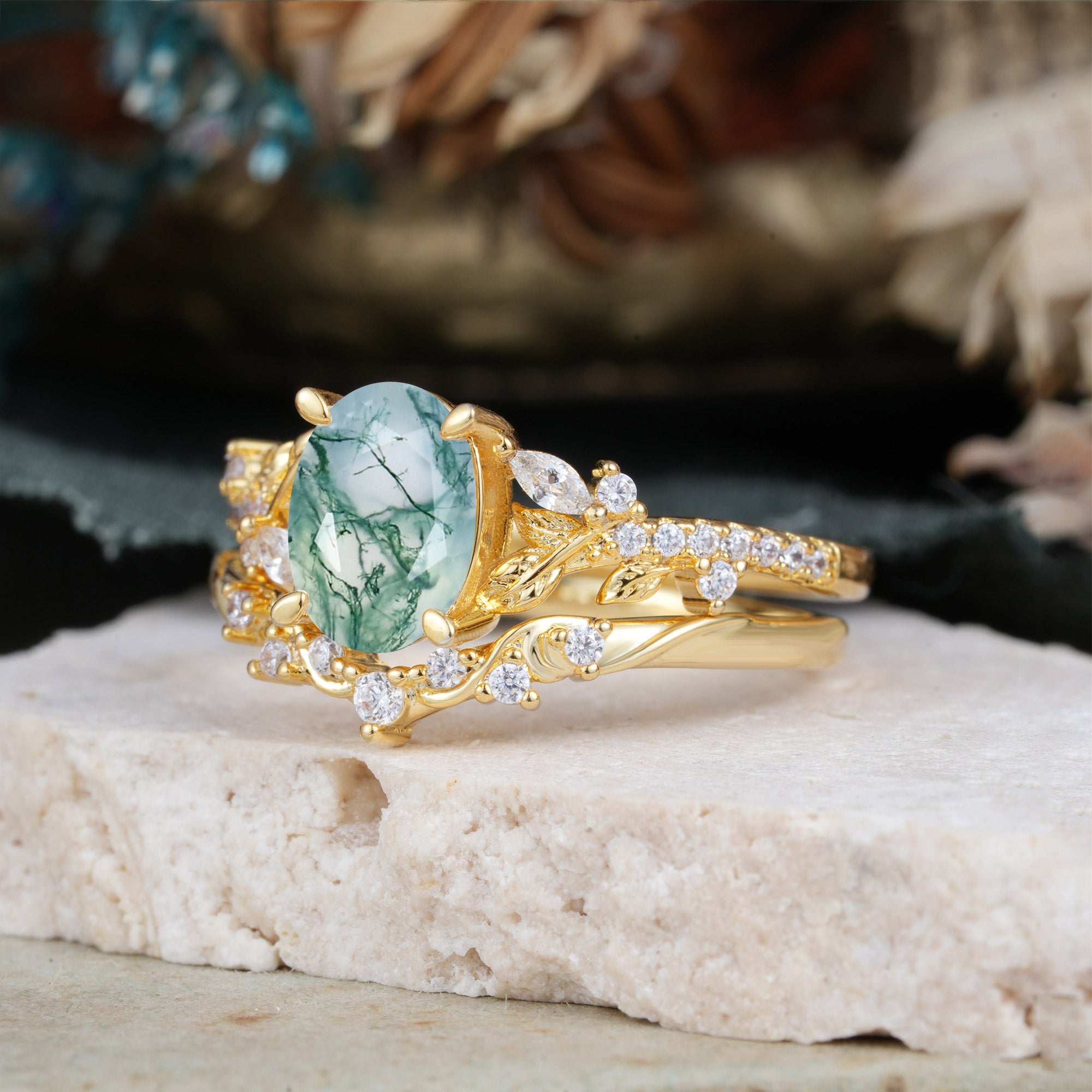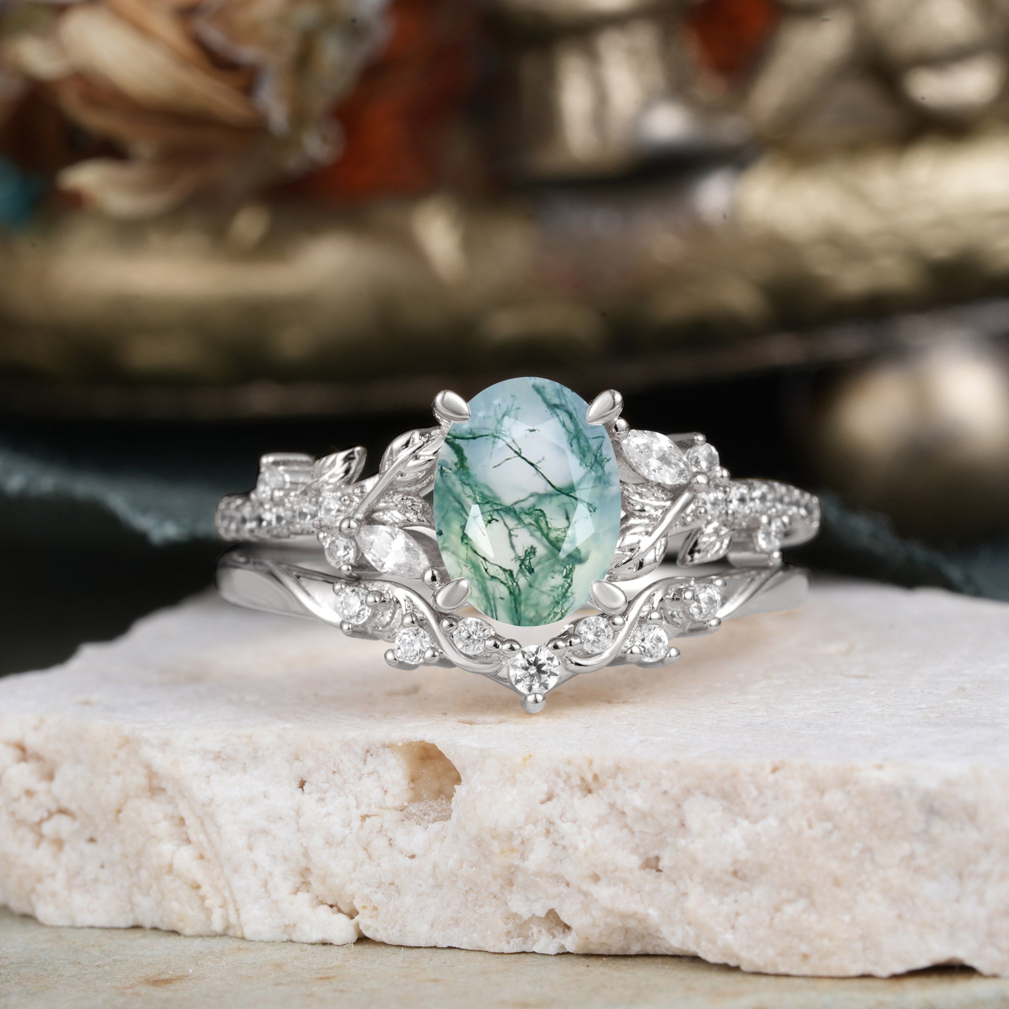 Stone Material: Moss Agate | Stone Material: Moissanite |