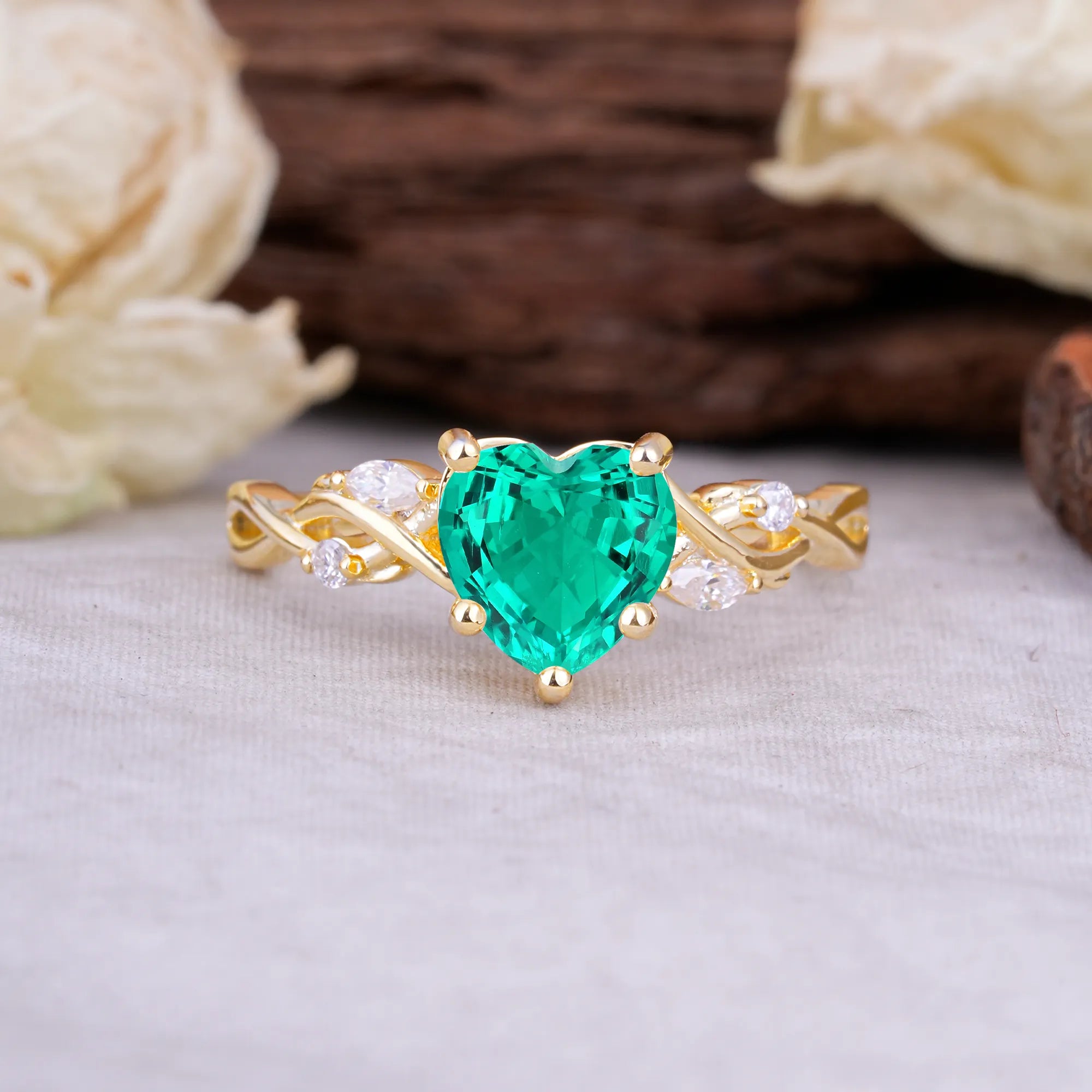 Vintage 5-Prong Heart-Cut Emerald Engagement Ring