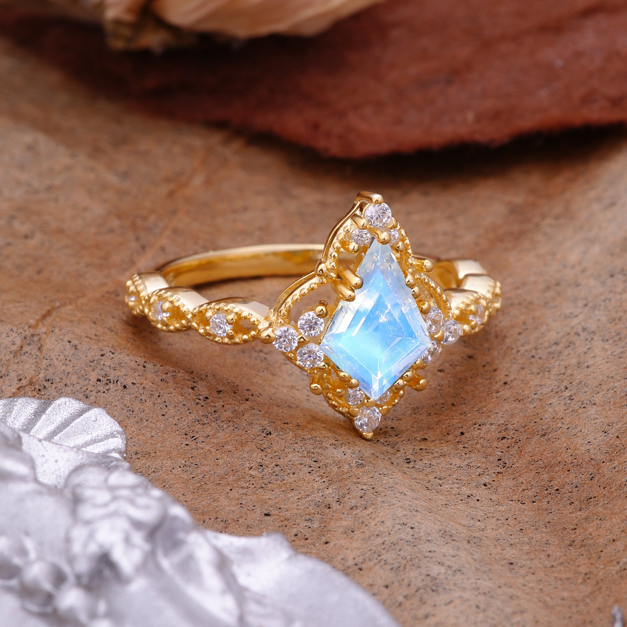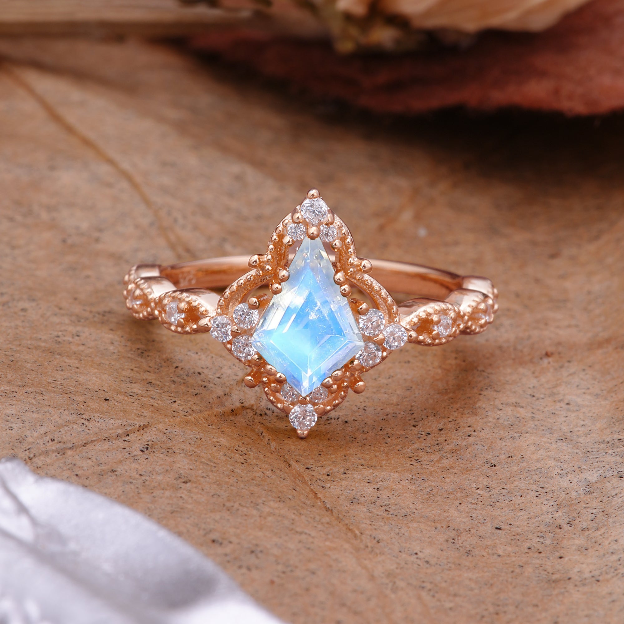| Stone Material: Moonstone | Stone Material: Moissanite |
