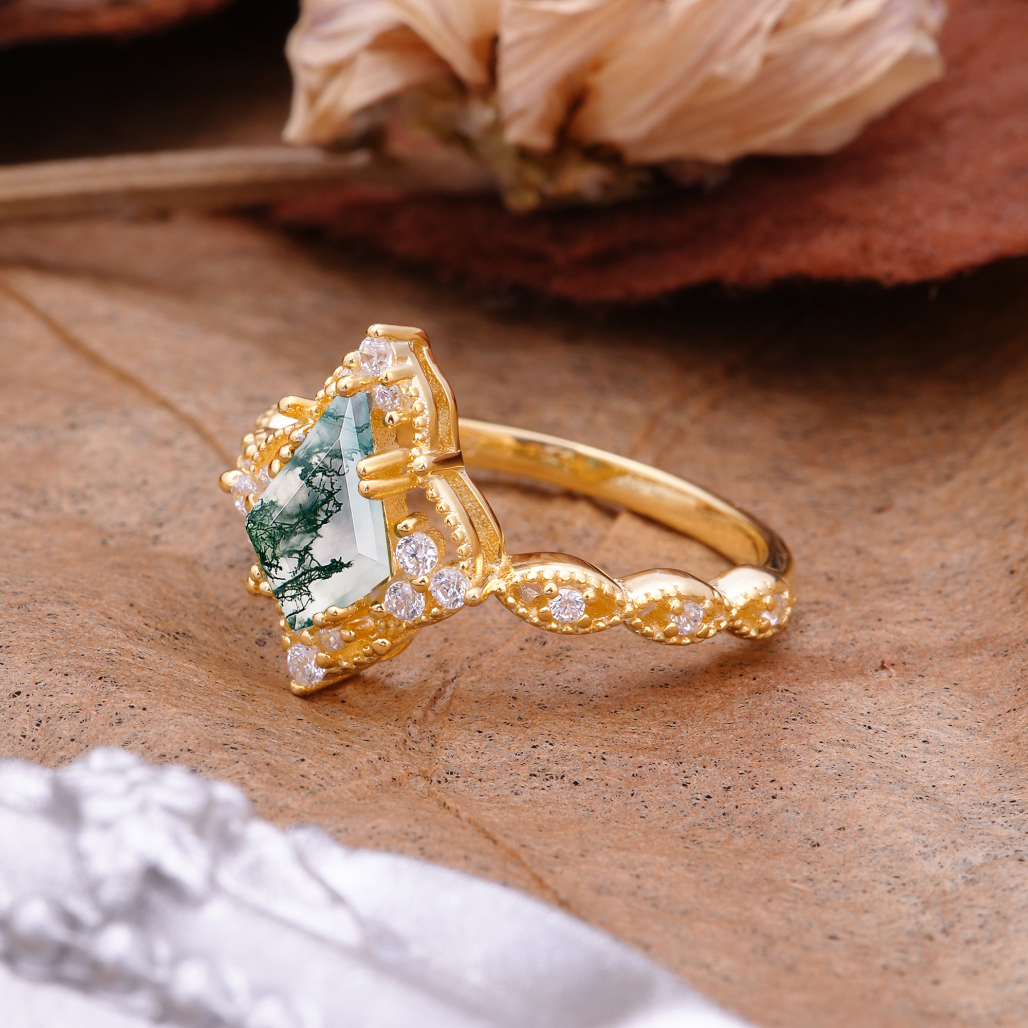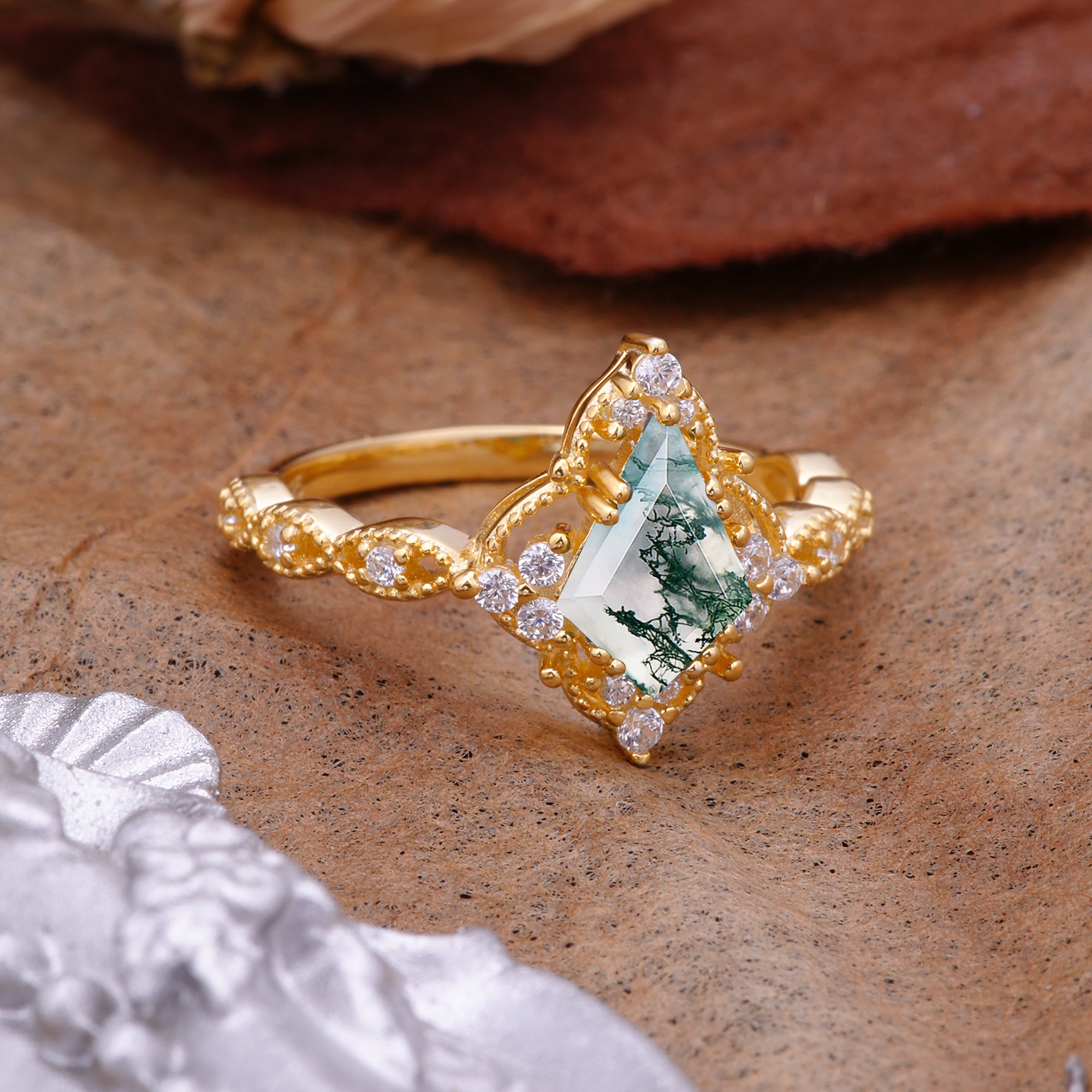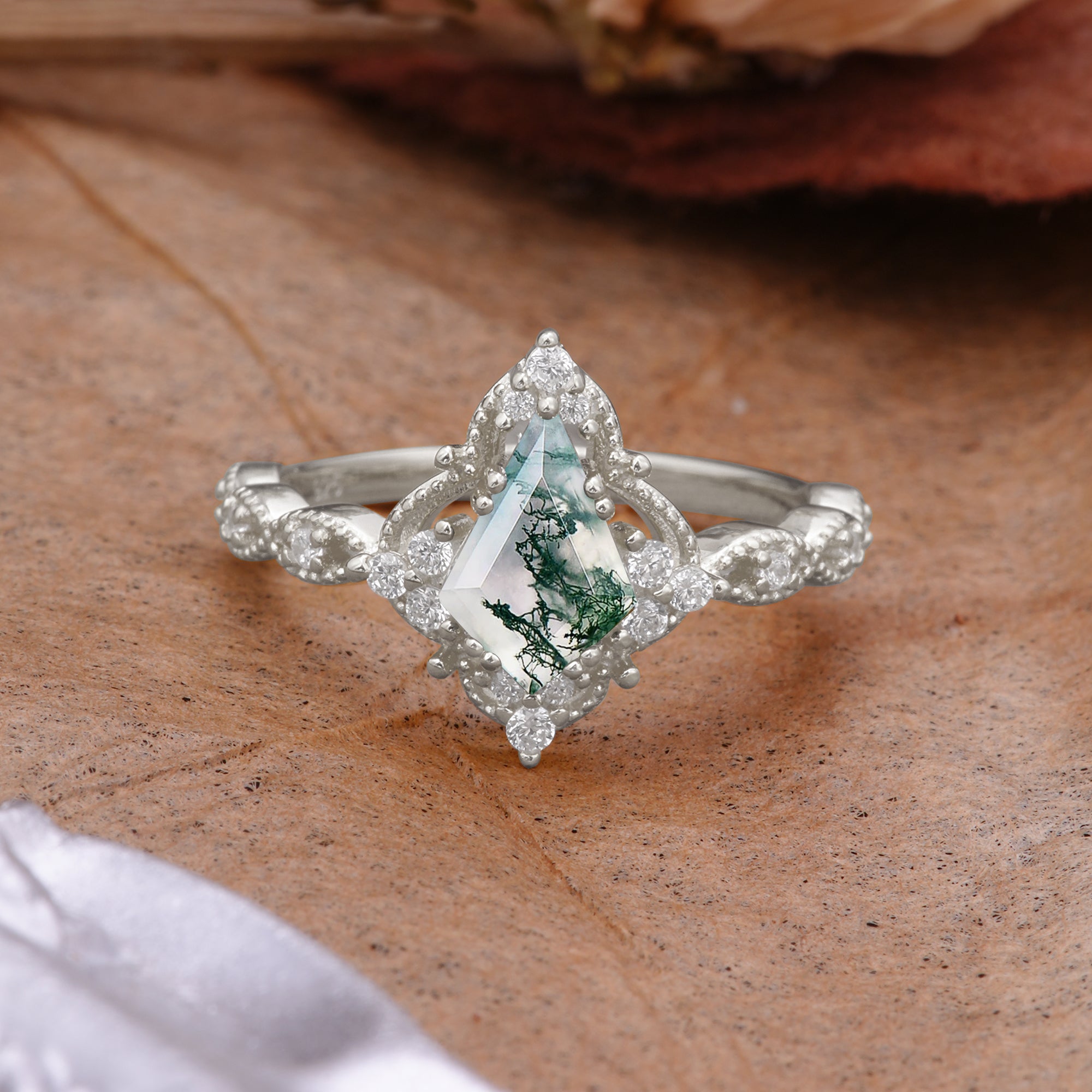 | Stone Material: Moss Agate | Stone Material: Moissanite |