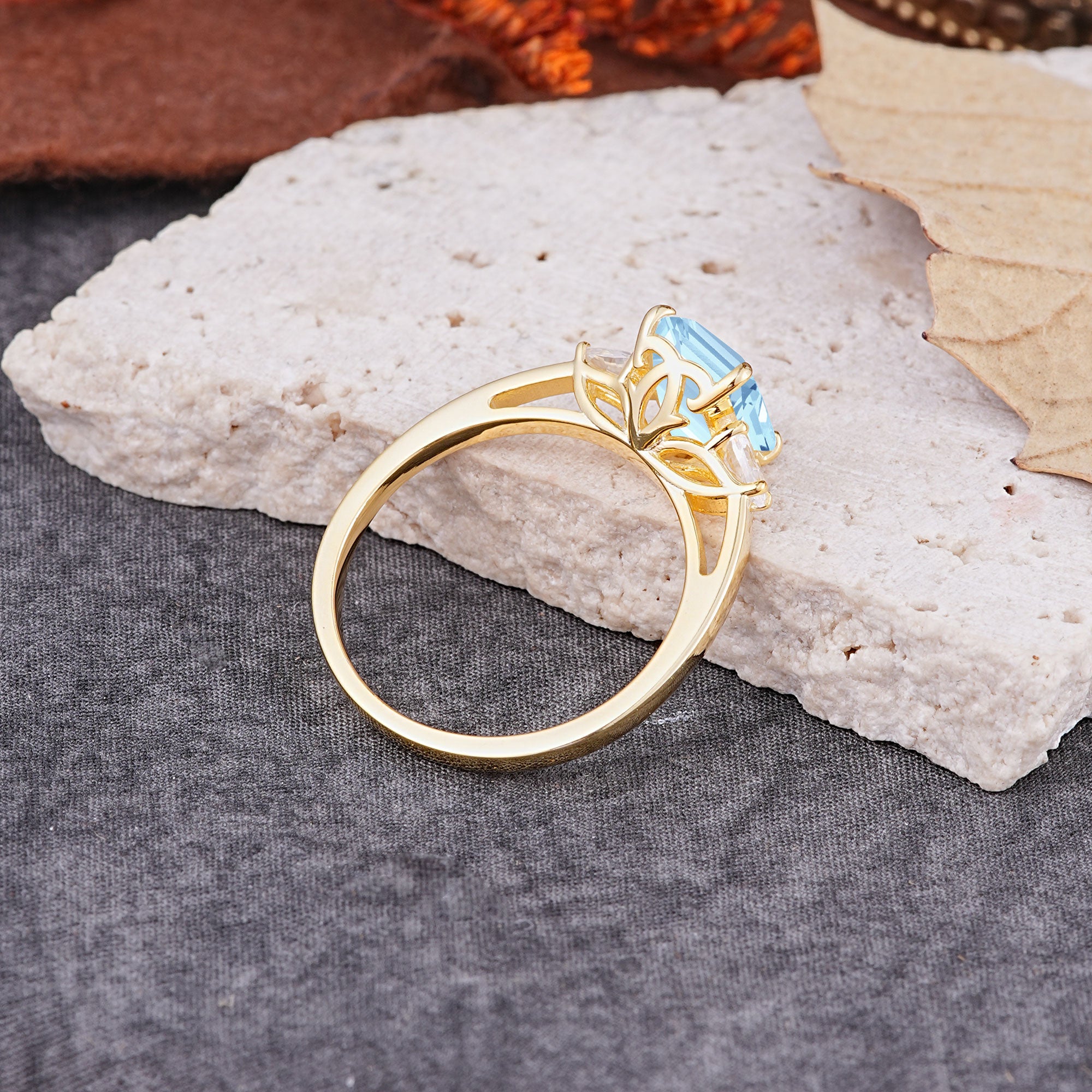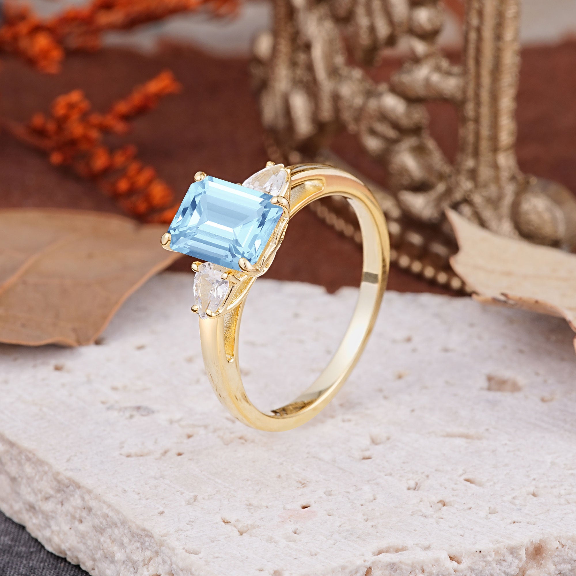 Vintage - Style 4 Prong Emerald Cut Aquamarine Ring