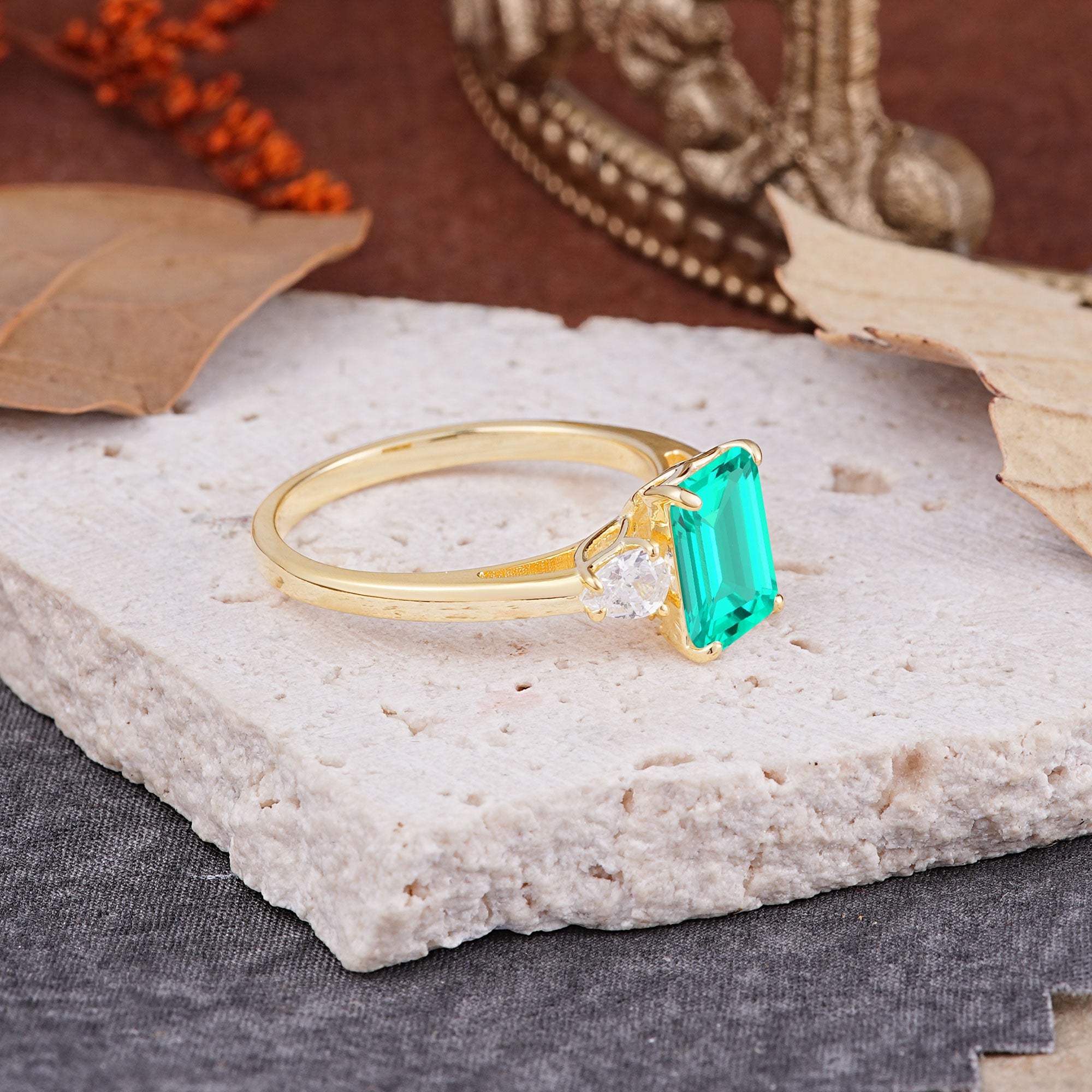 Vintage - Style 4 Prong Emerald Cut Emerald Ring