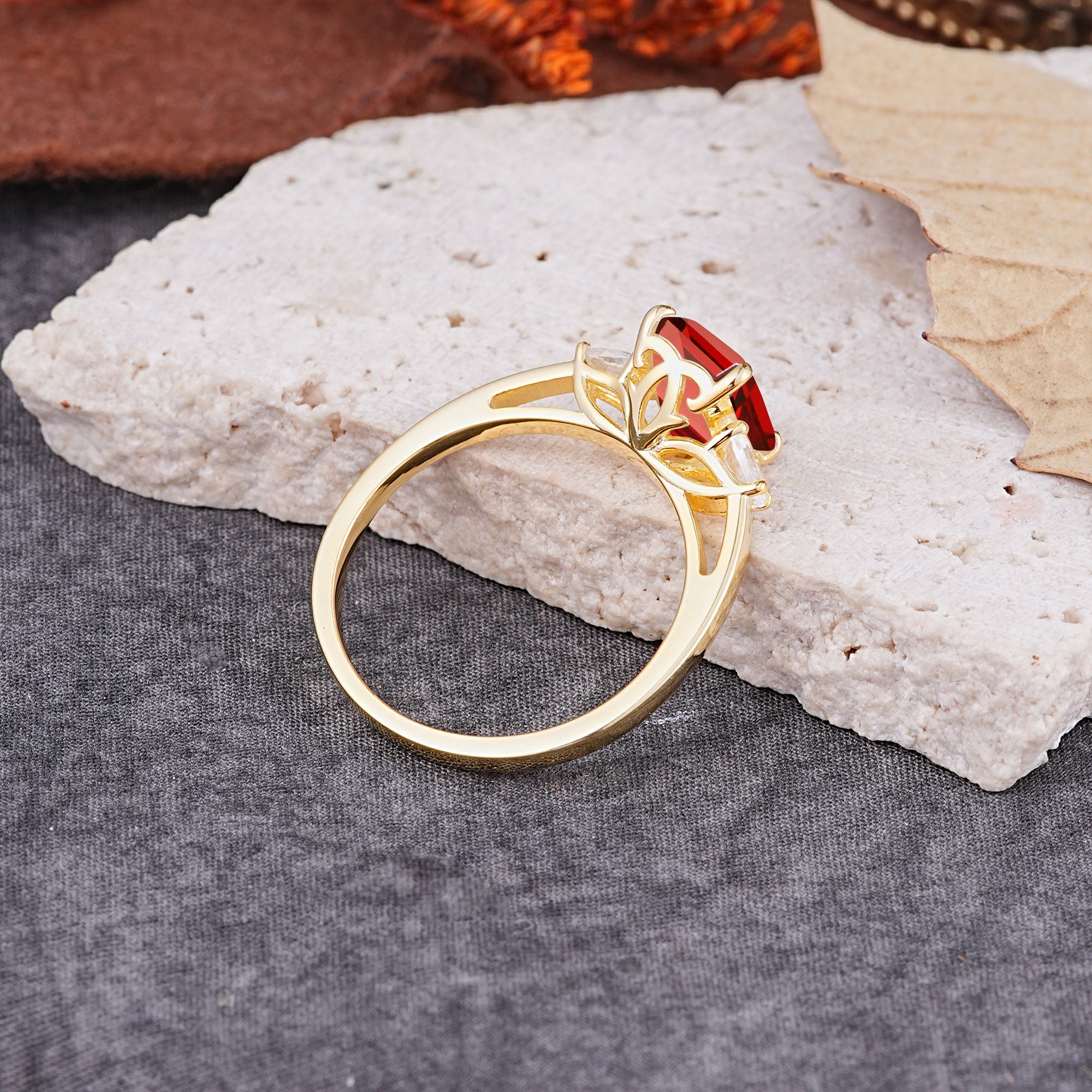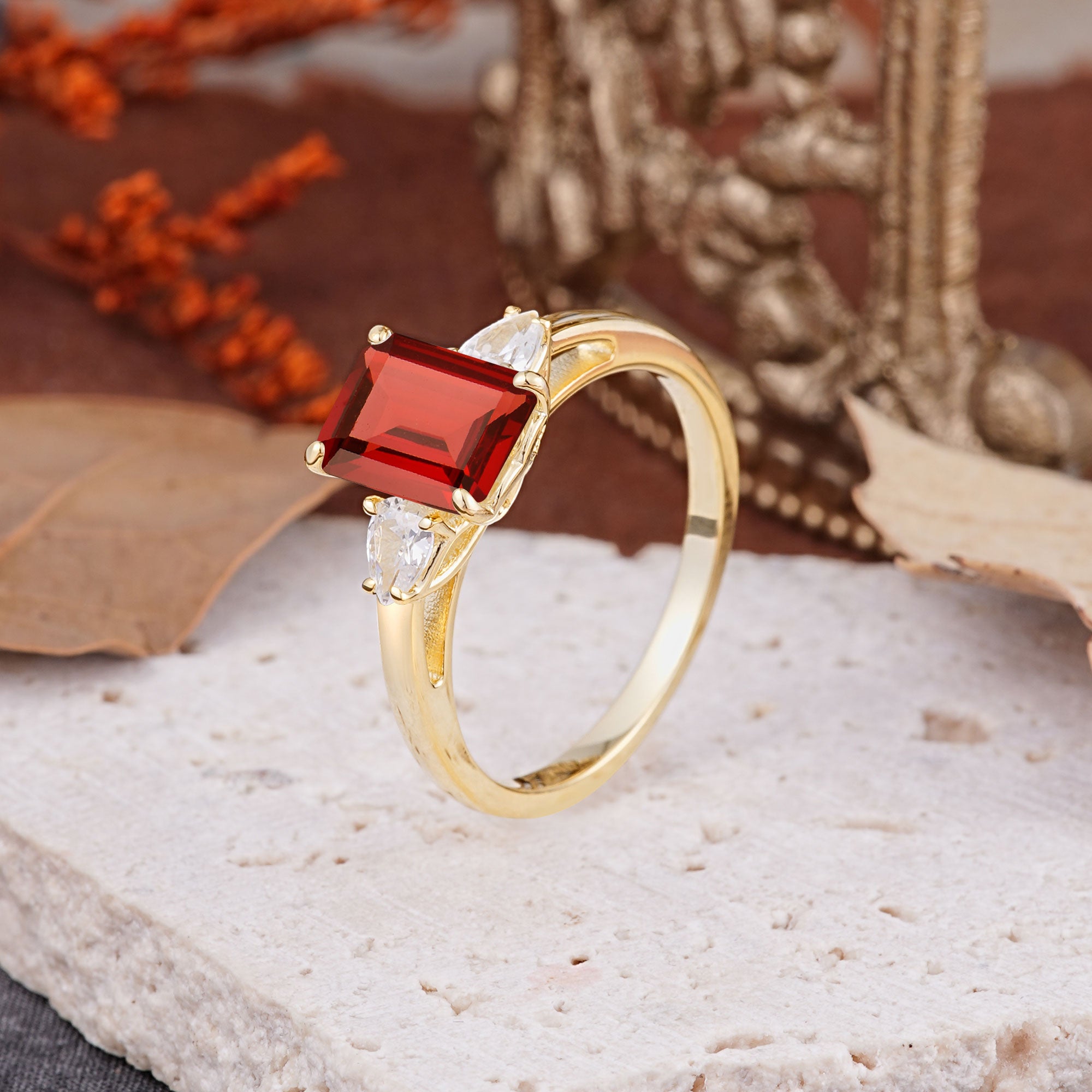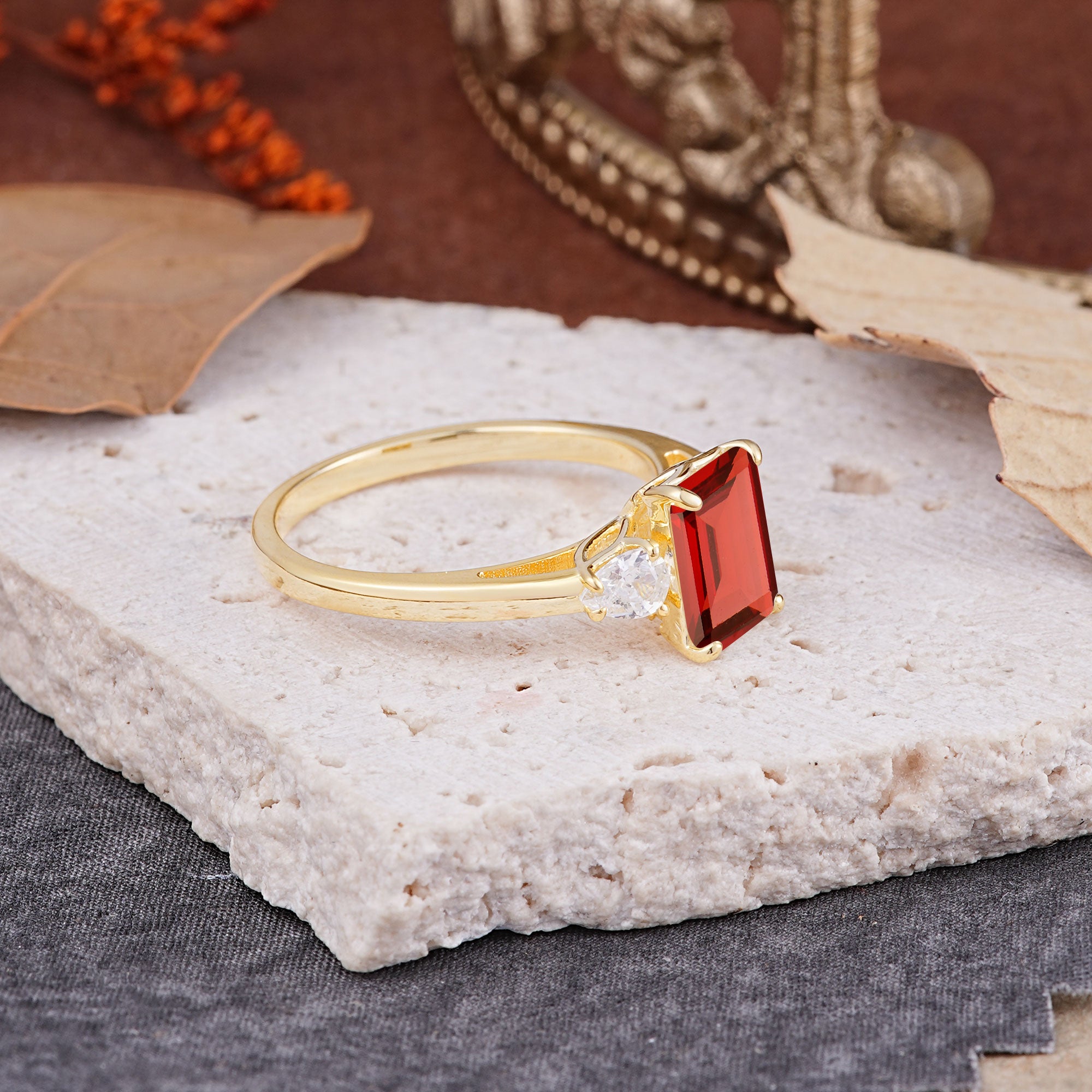 Vintage - Style 4 Prong Emerald Cut Garnet Ring