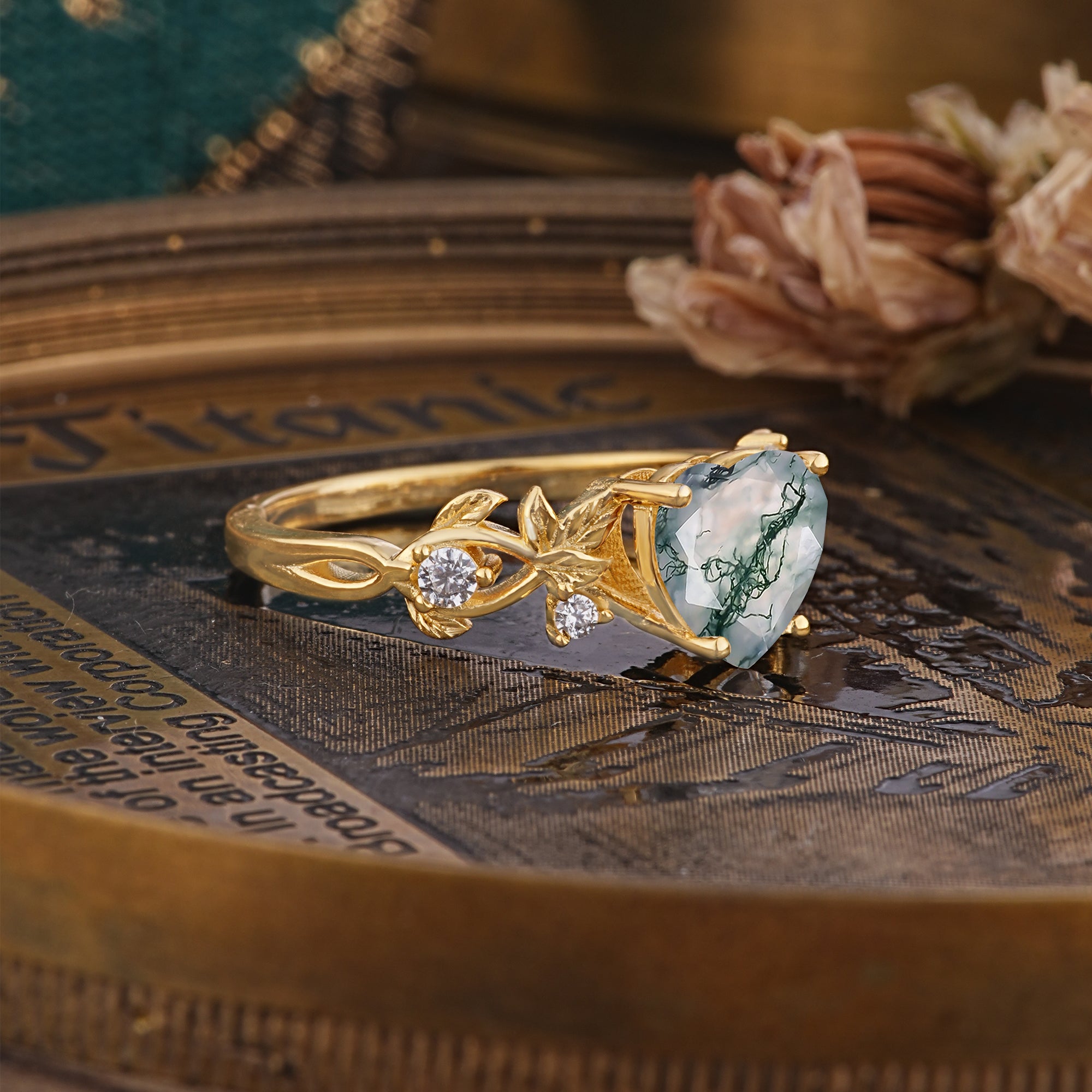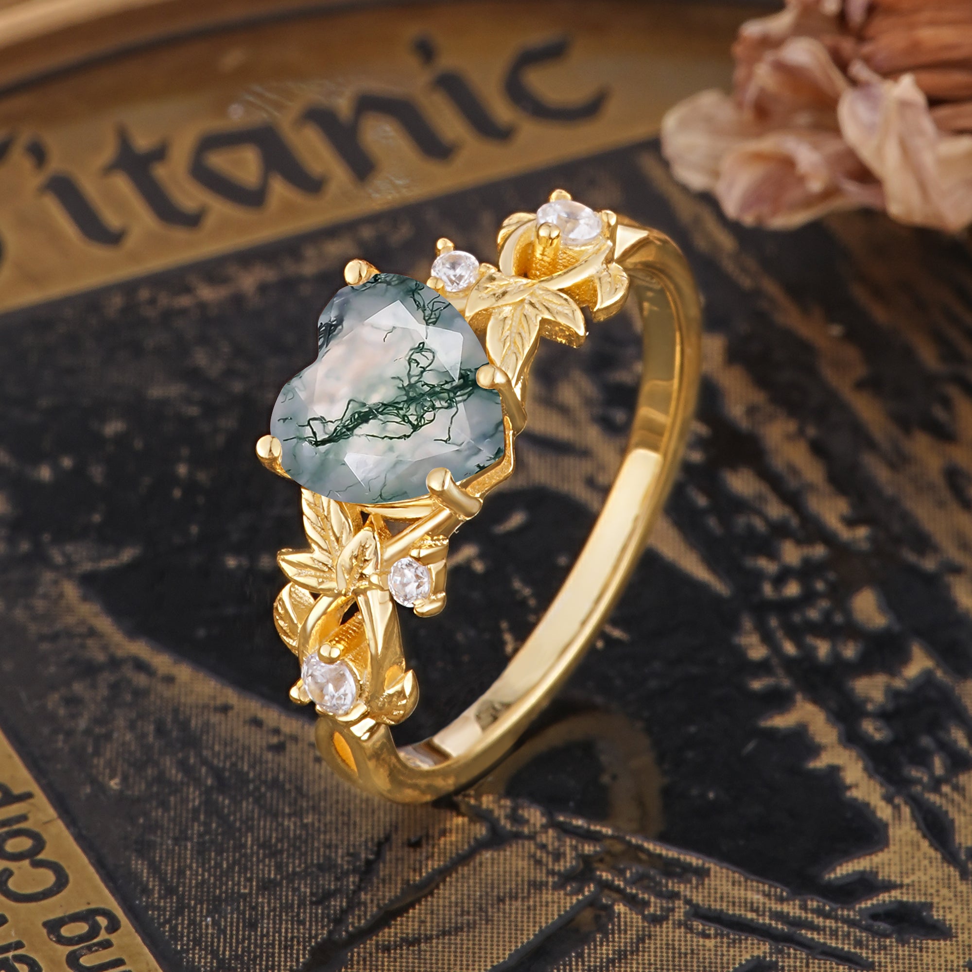 | Stone Material: Moss Agate | Stone Material: Moissanite |